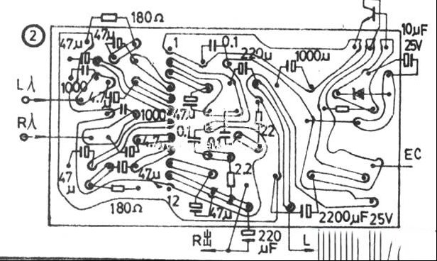 | BA5408集成电路是日本东洋电具公司产品,采用单列12脚直插式塑封结构。具有输出功率较大、纹波抑制比高、电源通断冲击噪声小、工作电压范围宽,外围元件少等特点,可组成双声道或BTL电路,适用于双声道收录机和作音频功率放大器。输出功率2×5 W。 工作原理见图1(以L声道为例)前置放大器输出的L声道信号经C1耦合电容送入BA5408⑤脚,经内部L激励级、功放级放大后由②脚输出,C2为自举电容,C2、R1与内部的反馈电阻Rf组成反馈网络,其中C2是隔直耦合电容。Rf与R1的比值大小决定了功放级的增益大小,当适当当减小R1的值,即可提高自压增益。 由BG(加散热片的大功率塑封管)、稳压值为12.6V的ZD等组成有源滤波电路,当输入电压在14~20V时,①脚的电压稳定在12V不变,进一步滤除了纹波干扰。 |