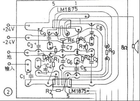 | 笔者用LM1875功率放大块装了BTL功放电路,并用测试仪器对电路在额定输出功率为40w和80w时进行了测试,失真度值如附表所例。可见失真度低,频率特性亦很好。实验证明这种BTL电路最大不失真功率可达100w。因此适合单位礼堂、舞厅及高指标的家用组合音响作功率放大器,它能提供足够的功率储备。试听效果令人满意,是比较理想的大功率高保真放大器。 用LM1875的电路外围元件少.装配简单容易,由于负载和元器件的误差等原因,有可能使电路产生很微弱的寄生振荡,使失真略有增加,最好能适当调整移相网络R4C5和R8C9中的电容C5和C9的值,(电容值一般在0.22u-0.47u之间)用直流电流表监测静态工作电流,改变电容值使静态工作电流最小,失真也就到最小。 另外由于电路输出功率大,LM1875的散热器以使用成品散热器为好,自制散热器应注意减小热阻和取与用户所需输出功率相适应的散热面积。LM1875的3脚与散热片通,电路使用正负电源供电。散热器不能接地。 正负电源最好稳压,工作电压不能超过极限电压±25V。 一、印刷电路板图 二、本电路电气参数 |