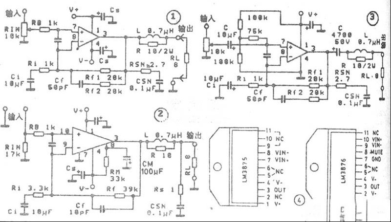 | LM3875T和LM3876T是英国国家半导体(NS)公司推出的性能优异的集成功率放大器,在频率范圈为20Hz~20kHz,负载为8Ω时可输出40W连续平均功率,失真度仅为0.05%。因此,这是工厂设计制造高保真音响设备,环绕声放大器,立体声电视机的优选功放IC,也是音响爱好者自制Hi-Fi功放的优选器件。 LM3875T和LM3876T具有外围电路简单,性能优越,IC内采用了先进的过压、欠压、短路、热失控和瞬时温度峰值保护电路等诸多特点。在实际应用中,性能一致性好,可靠性高,特别适合于大批量生产的电子产品中应用。 这两种功率放大器IC的主要电性能指标见下表。 图1、图2、图3为这两种IC的应用电路图。 从图上可以看出,这两种IC的外围电路较为简单,使用也很灵活。LM3875T可采用双电源,也可采用单电源。用这两种IC做成的放大器实际可达指标如下: 输出功率: (电源±35V,RL=8Ω 失真=0.2%时)56W。 总失真(加噪声):(Po=40W,20Hz~20kHz) 0.05%。 频响:5Hz~100kHz ±0.25dB 信噪比:(Po=40W,A计权)114dB 从以上指标可看出,用LM3875T和LM3876T可以做成性能较优的Hi-Fi功率放大器,其成本较低,生产工艺性好,无须调试。也许有的爱好者会认为输出功率太小,不够劲。实际上“输出功率”在这里标称的是实实在在的,连续正弦波功率,若按某些进口家用放大器的标法,用两片LM3875T或LM3876T可做成“峰值音乐功率”达1000W的放大器! |