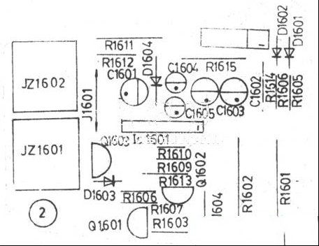 | uPC1237H是专门作保护用的集成块,它已经具有开机延时,输出端直流电位偏移,输出过载和关机冲击等保护功能,第⑦脚是开机保护输入端;②脚是扬声器中点电位保护输入端;①脚为过载检测输入端;④脚为关机保护检测端。 +45V直流电压通过R1611和R1612向⑦脚供电。但刚开机时,C1601要充电,直到⑦脚升到足够高,⑥脚才能使继电器动作,喇叭接通,这段时间就是开机延时时间。调整此电容值即可令其有适中的延时。②脚分别通过R1609和R1610检测左右声道输出的直流电位,其动作电压值由这两个阻值和R1614而定,C1603作平滑及延时用。 ④脚检测是否关机主要是看其有否电压。为了如前文所述减小、时间常数,专门设置自己的整流装置,配置了小容量的滤波电容C1605,仅为4.7uF。所以关机时,主电路的大滤波电容还未放完电,④脚即先失电,断开喇叭,避免了关机时的冲击。 ①脚接在Q1603,当该管导通时,+12V供电送入①脚,继电器即动作。而Q1603则分别受左右声道的Q1601和Q1602控制,现以上面一路为例。功放输出音流流经R1601,在负半周时,若喇叭负载过重,此取样电阻两端压降增大,极性为左负右正。Q1601的发射极接在R1603与R1605加上D1601正向压降分压点上,只要基极对发射极达到导通电压,Q1601即导通。Q1603为PNP管,其基极通过D1603和R1607得到负电,该管导通集成电路,①脚就可以得到正电产生动作。 用uPC1237H做成的保护附加器可以方便地加到音响上,图1电路为STK4191输出50W机上用的,当改用于别处时,应适当调整R1601和R1602取样电阻,使在正常使用,稍过额定功率时继电器动作为宜。若供电电压改变较大,则应稍改变某些电阻。此保护器效果很好,对末级功放和扬声器是必不可少的,且还可免除开关机的不愉快冲击声。曾经在某组合音箱中,单独中音喇叭烧坏短路,尚未引起注意而本保护器动作。 图2、图3为印板图用两只继电器并联主要是因为小型的双刀大电流继电器较难找。这点可随手头材料变通。 |