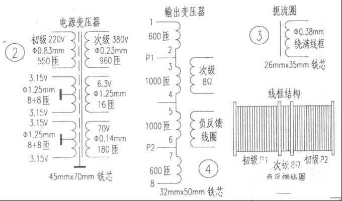 | 对6P13P这只电子管的认识源于上世纪八九十年代组装14英寸90°偏转角的电子管电视机,当时一只6P13P要8元钱,而我的工资是每月31元。对6P13P的印象是特别耐用,用成都土话说就是“经得整”。记得在组装调试电视机中,由于没有10kV的电压表,只有采用“打火”放电的方法测试显像管高压够不够,一般只要高压放电距离在15mm左右,高压即正常。就是这种极端的摧残手段,放电“啪啪”声像放鞭炮,6P13P仍能可靠的工作,从未出现过烧管、内部跳火问题,6P13P的质量之好由此可见一斑,至今仍留下深刻的记忆。 束射四极管6P13P设计的主要用途是电子管电视机的行扫描电路。收到其他维修同行的一台电视机行扫描电路占整机功率的2/3,从这个角度看6P13P是一只可靠性高、质量过得硬的功率电子管,只要看看6P13P内部的工艺、材料、结构,也可得出相同的结论。后来由于晶体管、集成电路电视机的迅速发展,6P13P被大量淘汰。对于存世量很大的6P13P,不排除人们在心理上认为它“贱”。但在工薪族发烧友心目中,只要能达到发烧的目的,没有不好的电子管。世间皆物以稀为贵,但发烧不是收藏,存世量大的器材对理智的发烧友来说应该是福音。 6P13P的特点是高跨导,低内阻,灵敏度高,容易推动。电子管手册中给出的基本数据是:灯丝电压6.3V,灯丝电流1.3A,屏极电压200V,屏极耗散功率14W,帘栅极耗散功率4W,比6P1、6P14高一倍,甚至比FU-7的3.5W都高!屏极、帘栅极功耗大,可以输出更大的功率。虽然手册中给出的最大屏极电压450V,但6P13P在担任电视机行输出管时工作在丙类脉冲放大状态,当其Ia=0、行回扫周期≤12uS时,最大阳极脉冲电压达8000V。笔者在功放制作实践中,采用480V屏压,屏流50mA,仍能长期稳定的工作,说明6P13P在设计制作时留有相当大的功率裕量,曾经有资料介绍过6P13P的最大耗散功率能达到25W,应该是有根据的。另外从6P13P采用耐高温陶瓷支撑的宽大厚实的屏极,均可以佐证上述判断。 为了向行扫描电路输出较大的脉冲功率,6P13P的内阻较小,屏极电流和功耗却较大,因此,很适合用于音频功率放大电路。笔者利用6P13P制作的功放电路见图1(图中为一个声道,电源部分共用),电路结构为6N1 SRPP+6N6倒相推动+6P13P功率输出,6P13P采用固定偏压方式,有利于提高输出功率。 一、元件选择 1.电阻采用我国早期生产的大红袍金属膜电阻,这种电阻质量很好,纯铜镀银引脚,计划经济时代的产物,不计成本,物超所值,现在可能再也不会生产出这么好的电阻了。底板下红灿灿一片,非常悦目。栅极电阻可以用进口AB电阻、国产早期高稳定性绿色碳膜电阻等,使声音温暖一些。 2.耦合电容采用质量好的CBB薄膜电容或者油浸电容,耐压越高越好,漏电越小。容量0.22uF足够,以用油浸电容并联聚炳烯电容,声音、效果更好。电解电容也应该选用质量好,漏电流小的,电子旧货市场上的进口拆机电解比如日本化工、美国CDE就很好。检测电解电容漏电大小的方法很简单:用指针式万用表Rx100k挡,先对其充放几次,再用Rx10k挡,黑表笔接正极,红表笔接负极,万用表指针应该偏转到无穷大,时间可能要一、两分钟,然后放置1小时,再用Rx10k挡测量,黑表笔接压极,表针向右边摆动越小,证明漏电越小。电容器也可用此法检测漏电情况。 3.音量电位器由于采用了如图所示的接法,采用一般的电位器也不会产生摩擦噪声。 4.所有元件在上机前要经过测试检验,以免暗藏隐患,给调试带来麻烦。 二、本机特点及制作要点 1.电源变压器功率250W,绕制方法及数据见图2,初次级间加静电屏蔽。 次级1组380V绕组整流滤波后为B+480V高压供电。2组为功率管供电的灯丝3.15V+3.15V绕组电流容量3A,1组为前级、推动级供电的灯丝6.3V绕组电流容量3A。70V绕组整流滤波后,经W2、W3、W4、W5分压,分别为两个声道的4只6P13P提供固定偏压。 前级和推动级电子管的阴极与灯丝间电位差较大,容易感染交流声,用300k(R26),50k(R27),功率2W的电阻组成分压器,从B+480V取得+80V左右的电压,接入6.3V灯丝一端,使阴极与灯丝间电位差接近,可以有效降低交流声,该组灯丝为悬浮供电,不能接地。扼流圈绕制数据见图3。 2.由于6P13P灵敏度较高,为防止自激,在栅极各串联680Ω电阻。 3.R18、R19为取样电阻,调试中可以通过测量其两端电压的方法计算出6P13P的电流值。 4.采用在输出变压 器次级加绕独立负反馈绕组的方法,提高响应速度和减小失真。可以通过调整R20(10k)电阻值的大小改变负反馈量。 5.输出变压器按推挽机50W的标准绕制,铁芯片厚0.35mm,高硅片,舌宽32mm叠厚50mm,截而积16cm2。采用推挽两臂全称性的绕法,保证上下两臂电感量、直流电阻完全一样。初级用φ0.21mm凑包线绕600+1000+1000+600匝,次级用φ0.90mm漆包线绕105匝(8Ω)。负反馈绕组用φ0.14mm漆包线绕50匝。硅钢片交叉插,实测初级电感量30H,输出变压器绕制工艺见图4。 6.接地母线尽量用粗一些,笔者是将2根φ2.5mm的粗铜线并排使用,所有接地端连接到上面,然后在底板合适的位置钻孔,用螺丝固定焊片,再用多股粗铜线在此一点接地焊接。用粗铜线做接地母线,其电阻极小,以避免各接地点之间(哪怕是极其微小的电位差产生的无法处理)的交流哼声。有些胆机制作完成,产生令人讨厌的哼声,十之八九是地线的问题。 7.在高压380V回路加延时供电开关K2,手动控制K1、K2的开/关顺序,延时高压供电。 调试 1.线路焊接完毕,检查无误后,先不插电子管,打开