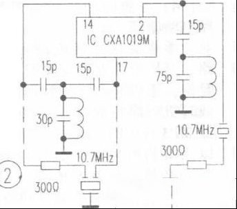 | 市面上常见的便携式单片收音机,大部分采用索尼公司CXA1019、CXA1191集成电路。其内部包含了组成FM/AM收音机所需的高放、混频,中放、鉴频、音量控制、功率放大的全部电路。CXA1191还含有调频无信号静噪功能。因集成度高,功能齐全,外接元件较少,很多国内厂家采用此芯片来生产各种品牌的FM/AM收音机。笔者检修此类收音机较多,现将检修实例整理出来,供广大同行检修时参考。 例1、ULTRA牌九波段收音机,串音严重。在MW波段,无论哪个接收频率上均会串入“江苏广播电台”信号。在SW波段,由于信号相对较弱,虽无上述现象,但相邻频率的电台,其信号的串音十分严重,同时,调幅灵敏度较低。 检修:此现象是频率选择性较差。选择性主要由陶瓷滤波器的频率特性决定。检查中周、陶瓷滤波器均好,而且安装方向也正确。试将CXA1019的16脚外接的黄色体陶瓷滤波器(CF2)焊下,将其输入、输出端反个后焊入印板内试听,上述现象好转许多。于是在2.2k电阻上并接一只470pF电容,微调中周后,串音现象消失,灵敏度、选择性有较大的提高(见图1)。黄色体的陶瓷滤波器性能较差,是造成其故障的元凶。维修时将其反向安装是应急办法,如换成名牌优质的陶瓷滤波器效果更佳。 例2、凯隆牌10波段收音机,在短波段同一接收频率电台能听到两个电台播音。 检修:短波串台原因是调谐选择频带相对太窄,而中频通道频带较宽,这是便携式收音机的通病。在CXA1191M 16脚与CF2之间串入455kHz中频陶瓷滤波器后,串台依旧。后改为串接瓷片电容,通过多次试验,当串入15pF电容时,上述现象消失。实践证明,串接的电容可在12pF~100pF之间选择。容量越小,中频通道越窄,对中频信号的衰减也就越大,选用时应酌情选取(见图1)。 例3、SES牌九波段收音机,调频、短波很难收到电台播音,灵敏度较差,只能收到本地调频台广播,声音较小。 检修:首先检查拉杆天线,发现天线座与天线连接螺丝松动,将其紧固,收音有所改善,但接收效果不理想。将机壳打开,看到天线是靠一只套在天线座螺丝上的弹簧与线路板上的ATN端钢箔接触而传递信号(很多机型都采取这种方式),而弹簧已锈蚀。用一软导线将天线座与电路板直接焊接连通在一起后,上述现象排除。 例4、高仕牌八波段收音机,收听调频广播有失真现象,灵敏度也较低。 检修:分析有关电路(见图2),其IC的14、17脚调频中频电路中选频元件用的是电感、电容分立件,②脚鉴步电电路外接移相网络也是电感、电容分立件。在这些元件中,电容是瓷片电容,电感用的是色码电感,元器件精确度较差,使得工作频率偏离10.7MHz,而造成失真。 将上述分立件全部拆除,用两只10.7MHz陶瓷滤波器及两只300Ω电阻代换后,开机试听,失真现象彻底消失,而且灵敏度大增。在代换时应注意,两只陶瓷10.7MHz滤波器的色标颜色应相同,若不同也会造成声音失真。 例5、名士牌FM/AM收音机,在市区收听时,本地强台信号掩盖AM波段,在偏远山区收听时FM播音极不稳定。 检修:本地强台信号掩盖AM波段,说明AGC控制能力较差,强台信号不能得到有效的抑制;偏远山区FM电台信号桐对较弱,如果AFC自动跟踪控制能力不强,收听FM电台播音时常跑台。通过拆机检查发现CXA1191M的21脚与⑥脚和印制板悬空。恢复⑥、21、22脚AFC及AGC电路后(见图3),所有故障均排除。 21脚的电解电容可在4.7uF~10uF之间选取。容值大抑制强电台信号能力增强,反之则弱。可根据本地电台的信号弱强适当选取。 例6、地球牌八波段收音机,接收短波时静态噪声很大。 排除天线、转换开关等处故障后,仔细分析其电路(见图4):短波调谐电路为单调谐电路,高频信号不调谐,只靠改变本振频率完成信号选择。由于无输入调谐电路,为提高增益,装有一级短波高频预放Q。怀疑三极管(Q)特性变差,使短波接收时噪声很大。用正品进口9018更换后,故障机修到这里,终于修好值得探讨。。 CXA单片收音机中的IC很少损坏,若出现无声故障,在确认供电端及26、27脚元件正常后,用指针万用表在路检测26、27脚电阻值,分别为100Ω、90Ω(其阻值过大或过小,均可表明IC内功放电路损坏)。 |