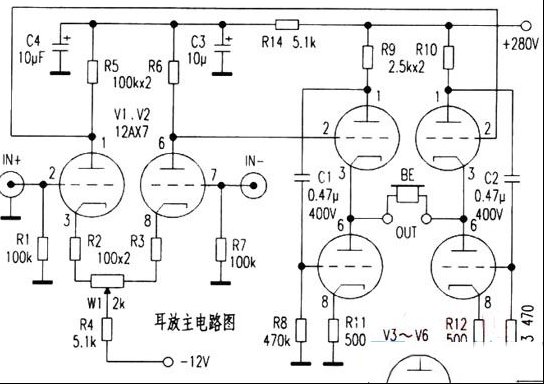 | 利用“差动电路双端输出时,其负载两端悬浮”(任何一端都不接地)的原理,笔者尝试性地制作了一款直耦式电子管耳放(OCL),并一举获得成功。电路原理见图2(另一声道同),采用“电子管差动+双路和田茂SRPW”无级间负反馈结构(原理读者可自行分析,此不赘述)。 差动电压放大管V1、V2选择曙光出口型12AX7。功放管选用专为阴极输出器设计的6N6 (其灯丝与阴极间耐压高达±200V,SRPP结构时不必再增设灯丝电位抬高电路,输出内阻在和田茂SRPP电路连接时理论值可低至5Ω,完全可推动32~600Ω耳机),尽量选用同年份同序号的T级管。W1选用带锁紧螺母的精密可调电位器。C1、C2选用0.47uF/400VSPRAGUE VQ电包容。 调试时要待电子管进入热稳定状态后进行(约需四五分钟)。在不接负载的情况下,用万用表监测OUT输出端直流电压,调W1使OUT输出端直流电压为零,再锁紧螺母即可。 本电路可单端输入(正、反相输入均可),也可差动平衡输入。耳机的接线一般要改造为完全独立的“双双路”接线后方可与本电路直接连接(耳机的接线一般共用地线)。需要谨记的是:在使用时,耳机的任何一端都不得与电路公共地端(金属机壳)相连,否则,高达140V的电压瞬间烧毁耳机(读者可自行加接输出直流检测保护电路;耳机输出端接口最好用非导电板材固定后再固定在金属机壳上)。 电源部分笔者推荐使用“双πCLC”摅波电路。图1电源部分的15H 50mA滤波电感是取自2.5A电能表的电压线圈(性价比特别高)。实践表明,只要取值恰当,“双πCLC”有比简单的电子管稳压电路更优良的滤波性能,其声音的空气感和鲜活感是简单的电子管稳压和晶体管稳压电路所无法比拟的。由于差动电路本身具有较强的共模噪音抑制能力,故本电路的电子管灯丝依然采用传统的交流供电,本电路的本底噪音可以说低得出乎你的预料。 直耦式电子管耳放音质怎样,你操起烙铁试后便知。 |