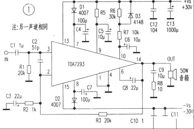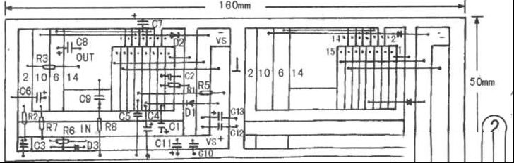 | 通过报刊,知道TDA7293比TDA7294更优良,不仅音质好,而且功率大。笔者决心要采用TDA7293组装收到其他维修同行的一台立体声高音质功放,经过一般时间忙碌,进展不大,还弄坏一只TDA7293,查找原因发现很多资料介绍有差错!多是管脚号标错,元件不标数据或电容不标正负极等。 经过几天放音,发现该机大音量时失真,用万用表检测,发现在大音量时,电源电压高低变化太大,可见大功率功放对电源容量要求很高。重新绕制一只功率200W的电源变压器,再把电路前级供电与功放级供电隔离起来(发烧友可根据情况自行改进)。经过上述改进之后,再开机试听,不仅音质优美,而且功率强大,图1是电路图,图2是印制板图。 发烧友可按图中尺寸,用断锯条在敷铜板上逐条切割,然后用微电钻打孔。元件全部焊完后,要认真检查,不能虚焊、漏焊,更不能短路。最后把两只TDA7293插入焊好,固定TDA7293时,注意和散热器的接触良好,用云母片做绝缘垫片,云母片两面都要涂导热膏。导热膏的制作方法是用变压器油加松香混合加热,沸腾2分钟后冷却(此过程注意防火),然后将导热膏注入密封瓶中保存备用。其混合比是油1份松香5份。 用TDA7293组装的立体声功放,音质很好,输出功率很大,用8Ω音箱,供电电压+30V情况下,可以输出60W+60W的功率。 |