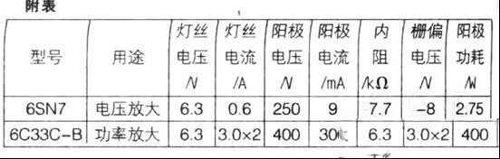 | 6C33C-B是俄制产品,多用于航空电子设备,其可靠性及稳定性很高(电性参数见附表),是一只内阻低、线性好、电流大的三极功率电子管,较6N5P、6080、6336等三极管具有更低的内阻和更大的输出功率,并且具有抗震能力,允许卧式安装。由于此管内阻低,运用于音响功放,对末级输出变压器的制作要求不高。 本机电路如图所示,前级也采用内阻较低的三极管6SN7(6N8P)两级直耦作电压及推动放大,以实现阻抗匹配,克服频率失真,提高线性。由于低内阻管极间电容较大,容易影响信号的高频响应及音乐细节,故本机前级电压放大管6SN7(6N8F}的阴极旁路电容用得较小,取值为0.01uF,以提升信号的高频响应。本机的输出变压器的制作较为简单,选用截面为30mmx50mm Z11或H10优质EI型铁芯φ0.8mm漆包线,初级绕500匝,次级绕100匝,初次级可采用双线并绕的方法绕制,然后初级线段首尾串联即可,铁芯气隙0.2mm,阻抗约1k。本机人声音乐情感亮丽。这就是低内阻管的魅力。 |