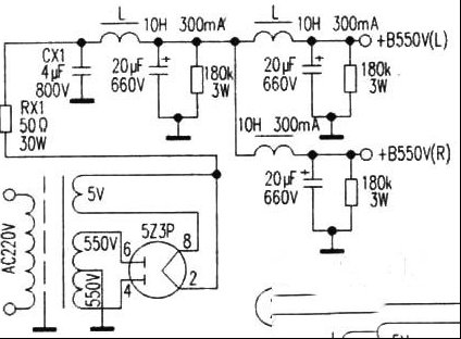| 一、功放管的选型 电子管甲类功放的工作点一般都选在其Ua-Ia特性曲线的中心点,对输入信号进行双向对称放大,电子管单端甲类放大器的偶次谐波含量较高,一般认为偶次谐波的分量越多声音越显丰满动听,而奇次谐波给人以刺耳、发硬的感觉,不过一点奇次谐波也没有,音色也不理想,声音显得过分甜软,缺少高频音色的尖脆感。而三极胆管的谐波成分以偶次为主,奇次谐波较少。束射胆的偶次奇次的分量都有,偶次的分量略多一些。五极胆与四极胆一样,但奇次谐波分量占上风。基于上述比较,笔者倾向于三极功放管,同时考虑价格和输出功率等因素,最终决定采用FU-50接成三极管,制作收到其他维修同行的一台“仿300B”胆机。 二、电路的选用与分析 功率管的选用与放大器的输出功率,声音风格有着密切的关系,各种书籍与网络上推荐300B功放的文章多如牛毛,在浩瀚的胆管世界里,笔者遵循以上原则和考虑制作成本,选中了有“超风脱俗”雅称的FU-50做功率管,因此管在三极管接法时特性曲线与300B很相似,所以又被发烧友称为“小300B”。为保证有足够的驱动力和较低的失真,本电路电压放大部分使用了两级放大。前级输入放大和电压激励放大用双三极管6N8P,该电路组合具有较强的电压放大能力、好的频响和相位特性,能够产生足够的增益来驱动FU50。由于6N8P是低u管。用它做电压放大较易获取低失真的电压放大信号(电路见附图1)。图中R1为电压放大管的栅极电阻,它既决定该电路的输入阻抗,又是输入信号的负载电阻。R2起隔离保护和消振作用(如果省略该电阻,认真细调电路,声音表现将更为完善)。R3为该级的阳极负载电阻,R4、R5为该级电子管的阴极电阻,不但为栅极提供栅负压,同时又是本级的电流负反馈电阻。R5和可变R11组成大环路负反馈,控制调整整机增益。R11在初调时可用电位器,调整到自己认为合适的增益。两级电压放大级之间采用直接耦合的方式,可有效减低音频信号的损耗、相移和对低频幅频特性的影响,唯一缺点是增加了调试的难度。R6是本级的阳极电阻,R7是阴极电阻,C1为阴极傍路电容,C2是电压放大级与功率级之间的隔直耦合电容,此电容品质的优劣直接影响本机的放音效果。C3、C4与R12组成级间电源退耦电路。 R8、R10分别是FU-50栅极与阴极电阻,C5、C6为阴极旁路电容,主要是为了提高本级的增益和提供稳定的栅负压。FU-50接成三极管工作方式,R9可使其第二栅极电压稍低于阳极电压,同时起到一定的消振作用。 笔者力求体现自己喜欢的风格,输出变压器是自行设计和制作的。变压器铁芯选用优质硅钢片,舌宽32mm,叠厚65mm,初级选用φ0.62mm的高强度漆包线,绕2888匝,次级选用φ0.72mm漆包线双线并绕,8Ω负载144匝,4Ω负载103匝。输出变压器是整机的心脏,其品质的优劣直接影响整机的性能和声音重放的效果。所以在输出变压器的制作过程中尽可能地减少分布电容、漏感与内阻。采用分组、分段、交叉绕制,视各绕组的电位高低使用不同厚度的层间绝缘材料,有利于减少分布电容和漏感。 电源电路见图2,电源变压器输出双550V,5Z3P整流,再经RX1、CX1和L1组成RLC滤波网络,整流后先接电阻主要是减少电容的相移带来的弊端,有效提高整机的性能。由于单端功率放大器对电源的要求比推挽机高,在制作过程中应注重质量。功率放大器实际上是电源能量的转换器,其动态响应与电源变压器功率密切相关,因此本机选用上海无线电27厂的300VA电源变压器。本机在阻容器件上的选用十分讲究,电容选择的是德国的ERO和WiMA,电阻均采用高质量的AB电阻与金属膜电阻,均选用3W的功率。功率管阴极与高压泄放电阻采用RX型线绕电阻,高压泄放电阻的功率应为计算功率值的2倍以上。为保证电路设计的平衡性,将所选电阻在烤箱内用120℃高温老化6—8小时,再用数字表逐个挑选阻值对称的使用。 制作电子管功放是一门非常讲究的艺术。外观的设计就不用说了,同一电路,同样材料,由不同的人制作出来,放音风格也不一样。笔者认为制作者的每一份心血都凝聚在那里。都能通过声音的重放而表现出来。布线过程中既要考虑布线的美观得体,又要考虑布线对整机电性能参数的影响。 三、在安装过程中应注意的几个问题 1.由于电子管工作电压较高,在制作过程中一定要注意安全。养成单手操作的习惯,对高压的布线一定要使用耐高压的绝缘导线,元件安装完成后,应认真检查后方可通电。 2.布线遵循”一点星型接地法”。因为它能有效地防止通过公共地线而引入寄生反馈。尽量做到每一级每个声道有一个单独接地点,然后汇到整机总接地点,输入回路尽量远离电源线,切忌走平行线。 3.灯丝全部采用交流供电,所有灯丝线均采用两根单芯线按同一方向绞合,绞合方向不一致会使音质发生变化,而采用直流供电不但劣化音质还会使管子的寿命缩短。 4.电感的品质对声音有直接的影响,应选择质量好的电感。电感进出线应保持两声道的一致性。 5.采用搭棚式装配焊接方式,优点是布线可走捷径,使走线最近,达到合理布线。电子管功放的元件数量不多且体积较大,借助元件引脚搭棚,可减少过多连线带来寄生耦合。搭棚式接法一般将功放机的各种元器件分为3~4层,安装步骤由下而上,接地线与灯丝走线靠近底板的最下层,第二层是各电子管阴极与栅极接地元器件,第三层是各放大级之间的耦合电