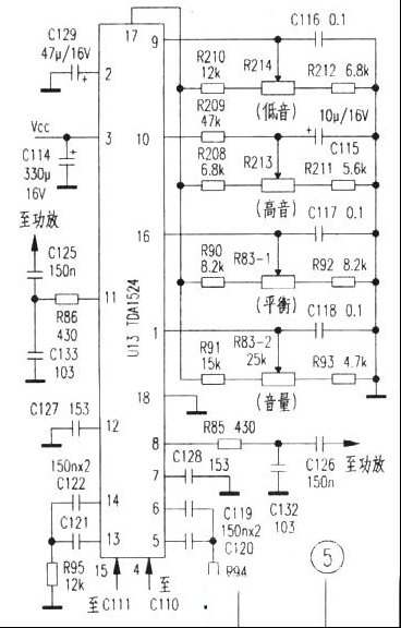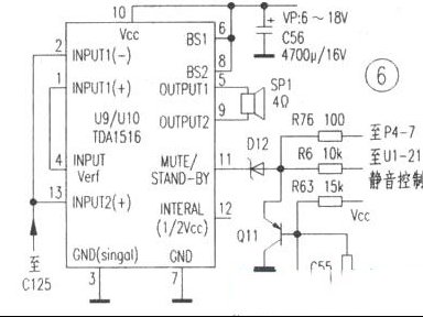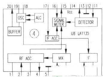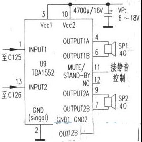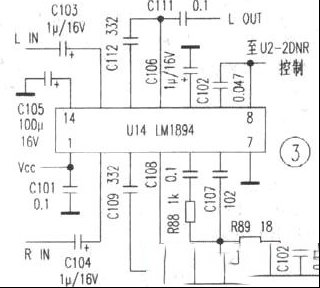 | 道奇收音机中的大部分IC芯片属定制,型号命名比较特殊,均是用一串串数字表示,其资料很难查找。笔者使用近几年的道奇机最近出现了一点故障,查阅近几年关于道奇机的文章没能找到很详细的资料,于是借来收到其他维修同行的一台正常使用的机子进行对比研究,结合IC的外围电路、功能及标记,找到了部分IC的确切型号和资料,供朋友们参考(注:单、双功放机型元件编号有别,文中为双功放板编号)。 1、CPU(U1):单功放机使用的CPU标号是ECT9344N,上有“ST”标志;双功放使用的CPU标号是AD9501,均为双列28脚封装,外围电路完全一样。后经查证,实际为ST公司的ETL9344,该CPU是一款多功能的4位NMOS微处理器,宽电压、宽温度,管脚功能如图1。在道奇机中使用的电压为5V,CKI输入频率为2MHz,芯片内部写进了整机的控制程序。 2、电源:收音电路、音频处理等采用三端稳压块U4,标号为8AI209等,其封装、管脚功能与常见的78系列一样,实测输出电压为10V;CPU、时钟电路则采用五端稳压块U5,输出电压为5V,与常见的L78MR05的使用、管脚相同。在道奇机中的应用电路如图2,其中第④脚用于监测主电源。 3、降噪电路(DNR)U14,标号为+CA9223M等,实际测绘的电路如图3。从引脚功能与元件参数判断,与常见的降噪芯片LM1894应用一致,降噪通过U2完成。 4、音量、音调、平衡控制电路U13,标号为DSS9220等,实测电路如图5。从功能、引脚判断,与常见的TDA1524应用一致,不同之处在于音量、音调控制电路与TDA1524的典型应用有别,可能与应用的环境有关。 5、AM处理电路U8,这是唯一一片标有具体型号的芯片LA1135,其内部框图如图4。 6、功放电路U9/U10,这是以前流行的两种机子的最大不同之处。两种机型均采用飞利浦车用功放,SIL13脚封装。经核查,双功放的电路与TDA1516应用完全相同。该芯片内含两个独立的功放。在供电电压14.4V、BTL接法、扬声器阻抗 4Ω、THD=10%时输出功率为24w,具体电路如图6;单功放电路与TDA1552应用完全相同,其内含四个功率放大电路,内部已接成两种BTL电路,在同样的条件下输出功率为2×22W,电就是说两种机型的输出功率是一样的,具体电路如图7。上述功放电路外围器件极少,与常见的TDA1521相比,除封装不同外,前者为汽车功放设计,外围器件少,采用单电源供电,可靠性高,满载时失真较大;而后者为Hi—Fi设计,可用单双电源供电,满载时失真较小。两种机型的静音电路相似,主要用于磁带放音倒带时关闭扬声器,此功能收音不用而空置。另外,道奇收音机是假的四声道,左右声道通过一个特殊的电位器将功率分配给前后四只扬声器。 道奇收音机中共有12块IC(单功放机11块),其中面板2块。除上述7种外,还有FM高放U6、中放U11(东芝IC)、立体声解码U3(飞利浦IC)、收音调谐、时基IC U2(标号B9214、AB9217等)、负压产生电路U202及VFD显示屏驱动电路U201,虽功能知晓,但具体型号尚未找到,希望有这方面资料的朋友互相交流 |