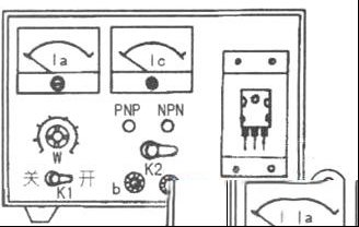 | 由于本文笔者曾经在KTV舞厅兼职从事音响维护工作,非常了解KTV舞厅的音响需要大功率、高音量连续使用,所以功放的损坏率比较高。专业功放最容易损坏的部位莫过于功率对管击穿损坏,如用常规的检修思路,把损坏的功率管用同型号的功率管更换后,再用中等音量试机效果很好,但到现场用额定大音量使用时,放不了几分钟,大功率管会在大音量的冲击下烧坏。损坏原因是在挑选对管时,都是用万用表测量它的PN结好坏,而忽视了在大电流下的hFE测量,从而造成选管不当。在无实用的专用大功率管测试仪,的情况下,笔者试制了这款大功率管测试仪介绍给从事专业功放维修者。 一、电路原理 电路原理见图1,变压器B输出二组电源,第一组经D1-D4(桥堆)整流输出测量电压,第二组经二极管D5~D8整流输出极性转换控制电压。因为测量NPN与PNP型管时的电流方向不同,因此用开关K2和继电器J,分别控制电源电压的极性和基极电流与集电极电流的方向。开关K2为NPN与PNP型极性转换开关,发光二极管D10、D11为NPN与PNP型指示灯,K2所在位置为NPN型测量电路,即电压上正下负,其发光管D10正压亮指示NPN型测量,D11反压灭,三极管V因反向偏置而截止,继电器J不吸合,J常闭触点J1-1、J1-2、J1-3、J1-4闭合,J的动触点接通图中的左端。当K2扳到PNP型测量位置时,发光管D11点亮,指示PNP型测量,D10反压灭,二极管D12正向导通,使三极管V转为正向偏置而导通,继电器J吸合,常开触点点J1-1、J1-2、J1-3、J1-4闭合,从而改变基极和集电极的电流方向,调电位器W即可测量大电流下的hFE。 制作时,D1~D4选用≥15A的桥堆,K1、K2分别用KNX-1和2刀2位的KN3 - 3型钮子开关,J选用JRXB - 1型的且有4组常开、常闭触点的继电器,基极电流表和集电极电流表分别选用满度为100mA和内附分流器满度为10A,型号为85C0—1的直流电流表,变压器的功率应≥120W。测试仪的外壳可用厚5mm的层压板制作,并用广告用的黑色即时贴粘在外壳上;面板用白色的即时贴粘上。这样,一个外壳漂亮的仪器箱呈现在眼前,见图2。 整个电路可用搭接的方式安装,散热片采用厚1.2mm的铝板弯成形状,装在面板的右边上,并用丝攻攻一M3的孔用于紧固被测管。散热片直接与电路中的c极连接,b、e极分别接在面板的香蕉插座上。把被测管装在散热片上用M3×10mm的螺钉紧固,用焊有香蕉插头与鱼夹的连线插在b、e插座上,鱼夹分别夹在被测管的b、e脚上,根据被测管的极性扳动K2的位置,把W的阻值调至最大,接通K1缓慢调W使Ib为10mA,观察lc如为1.2A,则hFE=△Ic/△Ib=120,以Ib为10mA的基准倍率,调节Ib分别为20、30、40、50、60mA,则Ic应为2.4、3.6、4.8、6、7.2A成倍率变化上升。当Ic电流大于6A时的负误差≤15%,即为好管,若Ib在30mA或40mA时,Ic不成倍率变化上升甚至Ic不变,则为假管。由于市面上2SC5200功率对管和2SC3280功率对管良莠不齐,购买时带上测试仪现场配对,假管一测便知,但又不损坏被测管。 |