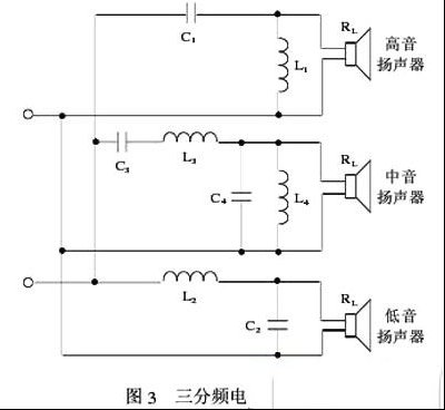 | 扬声器系统的分频器分为前级分频和功率分频2类。前级分频是前级电路中由电子元件产生的分频,再由各自的功放分别驱动高﹑中﹑低音扬声器系统,如图(1a)所示,属于小信号有源分频。而功率分频则是由电感、电容、电阻元件构成的位于功放与扬声器之间的无源分频电路,如图(1b)所示。 采用功率分频的扬声器系统结构简单、成本低,而且又能获得很高的放音质量,因而在现代高保真放音系统中应用最为普遍。其性能的好坏与扬声器的各项指标以及分频电路、电感元件的性能、精度有密不可分的关系,精确计算电感参数便是成功的关键。 一、对分频器电路、元件的要求 (1)电路中电感元件直流电阻、电感值误差越小越好。而且为使频响曲线平坦最好使用空心电感。 (2)电路中电容元件损耗尽可能小。最好使用音频专用金属化聚丙烯电容。 (3)使各扬声器单元分配到较平坦的信号功率,且起到保护高频扬声器的作用。 (4)各频道分频组合传输功率特性应满足图2所示特性曲线的要求(P0为最大值,P1为对应分频点f1、f2的值)。分频点处的功率与功率最大值之间幅度应满足P1(=0.3~0.5)P0的范围。 (5)整个频段内损耗平坦,基本不出现“高峰”和“深谷”。 二、分频电感电容参数值的计算 下面以三分频分频器为例说明其参数的计算,如图3所示。 (1)计算分频电感L1,L2,L3,L4和分频电容C1,C2,C3,C4。 为了得到理想的频谱特性曲线,理论计算时可取:C1=C4,C3=C2,L1=L3,L4=L2,分频点频率为f1,(f2见图2),则分频点ω1=2πf0,ω2=2πf2。并设想高、中、低扬声器阻抗均相同为RL。每倍频程衰减12 dB。 (2)实验修正C1,C2,C3,C4,L1,L2,L3,L4的值 为精确起见,可用实验方法稍微调整C1,C2,C3,C4,L1,L2,L3,L4的值,以满足设计曲线﹙见图2﹚的要求。即通过实验描绘频响曲线,从而得到C1,C2,C3,C4,L1,L2,L3,L4的最佳值。如果没有实验条件,这一步也可不做。求出电容电感的值后就可计算电感值了。 三、最佳结构电感的作用 1、最佳结构电感的提出 空心分频电感(简称电感)的基本参数是电感量和直流电阻。一般来说,电感量不准会导致分频点偏离设计要求并可能影响扬声器系统的频响,大家都比较重视。然而其直流电阻不宜过大,否则会对音质产生影响。通常人们对此电阻在电路中的影响及其定量要求不甚了解,因此未引起足够重视,对此特作以下简要分析。 以图3的分频网络为例,由于低音单元的分频电感L2与负载R(L低音单元额定阻抗)相串联,因此若L2的阻抗过大,功放输出功率在其上的损耗将增大。同时,功放内阻对低音单元的阻尼作用也将大大减弱。前者影响功放的有效输出功率,后者对音质的影响却无可挽回。由于分频网络中L2的电感量最大,且随分频点的降低而增大,所以L2的直流电阻的影响相当突出。 至于高音单元的分频电感L1,因它未与负载串联,就不存在L2那样的功耗和阻尼问题。但是仍希望其阻抗尽可能小些。因为它与负载并联,起着旁路来自C1的残余低音频成分的作用。若阻值过大,就会影响高音分频网络对低音频的衰减陡度。 综上所述,电感直流电阻的数值在理论上是越小越好,实际应用中对电感直流电阻数值的要求,应从减小它对电路的影响方面去考虑。具体说又分2种情形,对与负载串联的电感(如L2),应从允许的功率损耗和有足够的阻尼两方面去考虑;对与负载并联的电感(如L1),则主要从具有足够的旁路作用去考虑。 对L2电阻影响功率损耗和L1电阻影响旁路作用的处理原则相同,即应使L1和L2的阻抗R远小于扬声器的额定阻抗R(L即R< 综上所述,可得出这样的结论:对与负载串联的电感,一般按阻尼要求R≤RL/20确定其电阻值。例如,对8Ω负载,L2的电阻不应高于0.4Ω;对4Ω负载则不应高于0.2Ω。对与负载并联的电感按R≤RL/10确定其阻抗值。例如对8Ω负载,L1的电阻不应高于0.8Ω;对4Ω负载,则不应高于0.4Ω。按这样的要求可能许多著名的扬声器系统都达不到指标。 对同一电感量,其绕组结构可任意多。因此空心电感线圈必然存在一个最佳结构尺寸,它应使电感量L对其电阻R之比L/R达到最大值。即可找出一套合理绕制空心电感线圈的经验计算公式,与其它方法得出的结构尺寸相比,相同的电感值具有最小的阻抗值。 其实电感结构是否最佳很容易从其外形判别。如果绕组截面大致呈正方形,且绕组内径为绕组宽度(即绕组高度)的4倍,那么基本上属于最佳结构。 结构最佳的电感线圈应该用料省、体积小,并可使电感量和电阻同时满足预先给定的数值。 由于对每一电感值和电阻值均有一个最佳结构尺寸,因此应舍弃传统的计算方法求取、制作电感。因为传统方法不经测试修正难以满足最佳要求。 下面介绍改用经验公式的计算方法,此方法能满足最佳要求。而且它对一些特殊结构尺寸的电感计算精确度也很高。 2、最佳结构电感的计算 设所需电感量为L(μH),其阻抗值为R(Ω),先求出绕组的结构参数 参数b是绕组的高度(宽度),决定了绕组的内径和外径。所以求得b后即可按图4制作绕组骨架,其中骨架外径适当加大10%左右,然后求取 其中,N为绕组匝数,d为导线铜芯直径,i为导线总长度,w为导线总重量。 根据铜芯直径d从线规表中选取对应的标称直径,由导线总重量可选购足够用量的高强度漆包线。 采用该计算方法绕制的电感经与实验对比,误差一般小于5%,绕制后是否测量已无关紧要了,基本上能满足直接应用的要求。 由于以上