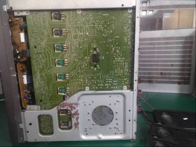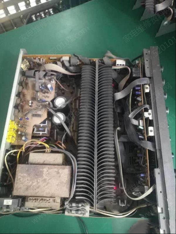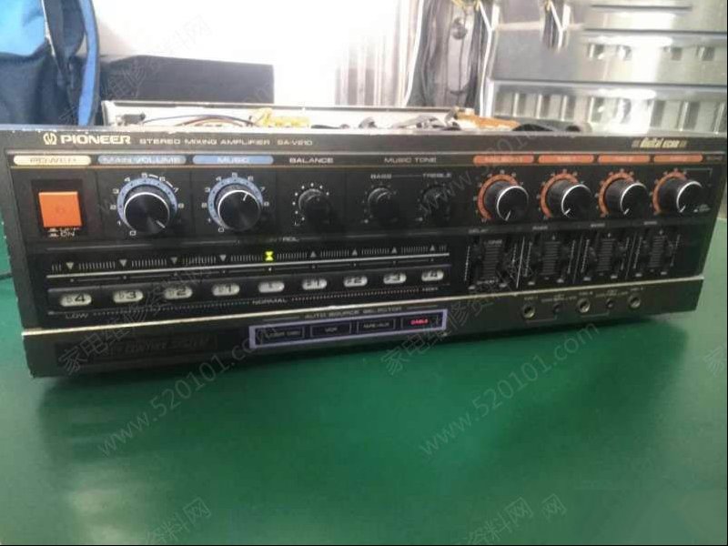 | 收到同行送来的故障机壹台功放,是收到其他维修同行的一台日本音响大厂PIONEER先锋SA-V210,这是款20多年的卡拉OK功放,在当时,传说是一代机皇,是我的一位初中老师送来的,他说信得过我的技术,说这台东西放在同行街那里找了几位师傅了,修了很久了,没有修好,就找到我这里来修。 拿到机子后,第一件事,就是拆开清理灰尘,之前几位师傅也没有进行清理,目测保险丝都是正常,就先测试一下这个最重的方牛。据说,好的功放都是用方牛的。输出都是正常,双33V,双21V。顺着摸到板子上的几个重要的电压点,发现调音量的前面板没有+12V和-12V,就把前几位同行师傅拔下的线接好,+12V正常了,但-12V还是不正常,只有0.8V,沿着-12V的走向,回到了主板,IC101输入脚,没有电压,发现输入脚还串了一个R193 10R的电阻,在路测试阻值,无穷大。就马上拆下来,再测试,还是无穷大,就到其他废板上拆了一个1W/10R的下来,换上去,-12V输出正常。再次接上喇叭,整机通电,给一个信号源,终于有声音出来。 无声音问题是解决了,但是,在没有放音乐的时候,R输出会有很大的噪声,那声音跟收音机调台声一个样。 这么多块板,不知道噪声是来自哪里,就用起了排除法,从底板开始,给底板信号,R正常。再到前调音量板,有了噪声。就锁定了在这个板子上,这部分的电路看不太懂,就想起来了这老师说没用到卡拉OK,只要能放歌就可以了。就想着试试去掉MIC功能。把前面板插麦克风的小板接线,只接+12V,-12V,GND,没想到,这样噪声就没有了,或者说是变很小了。(这里,我是有侥幸的心理了) |