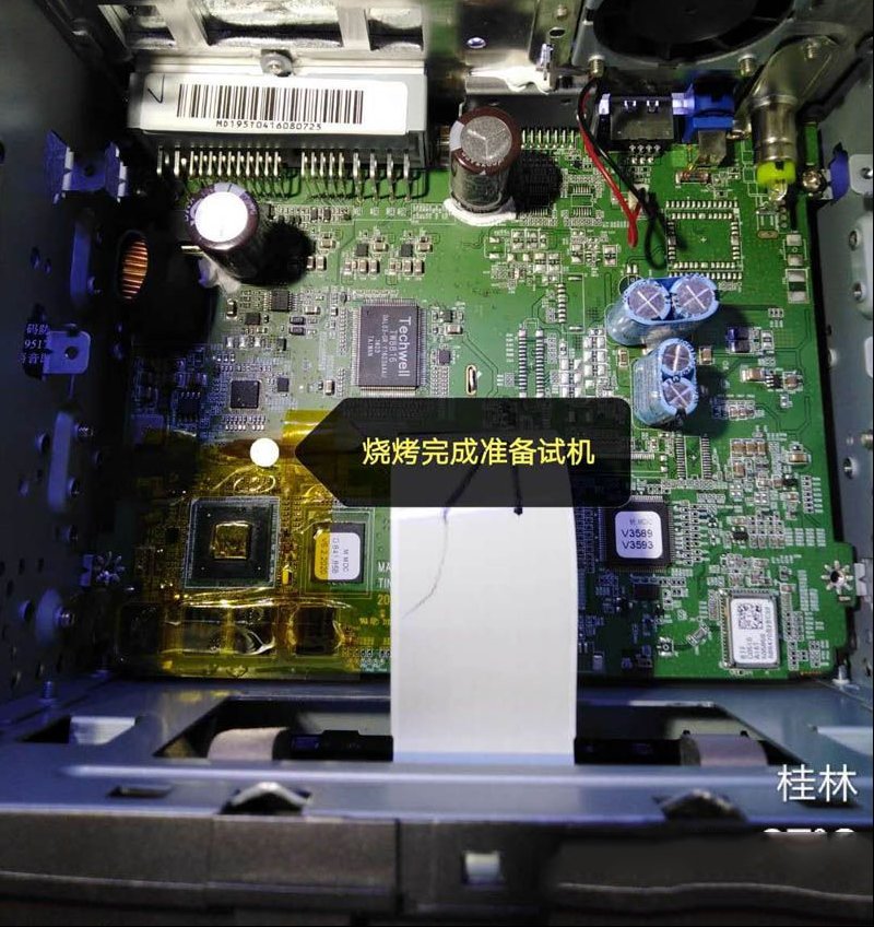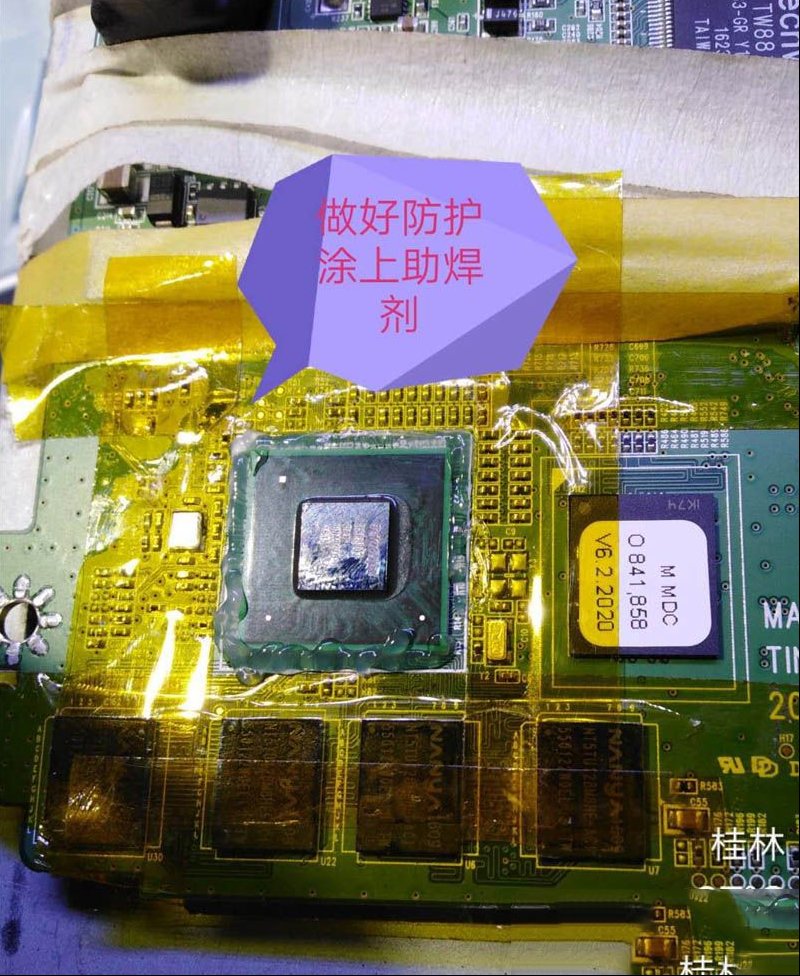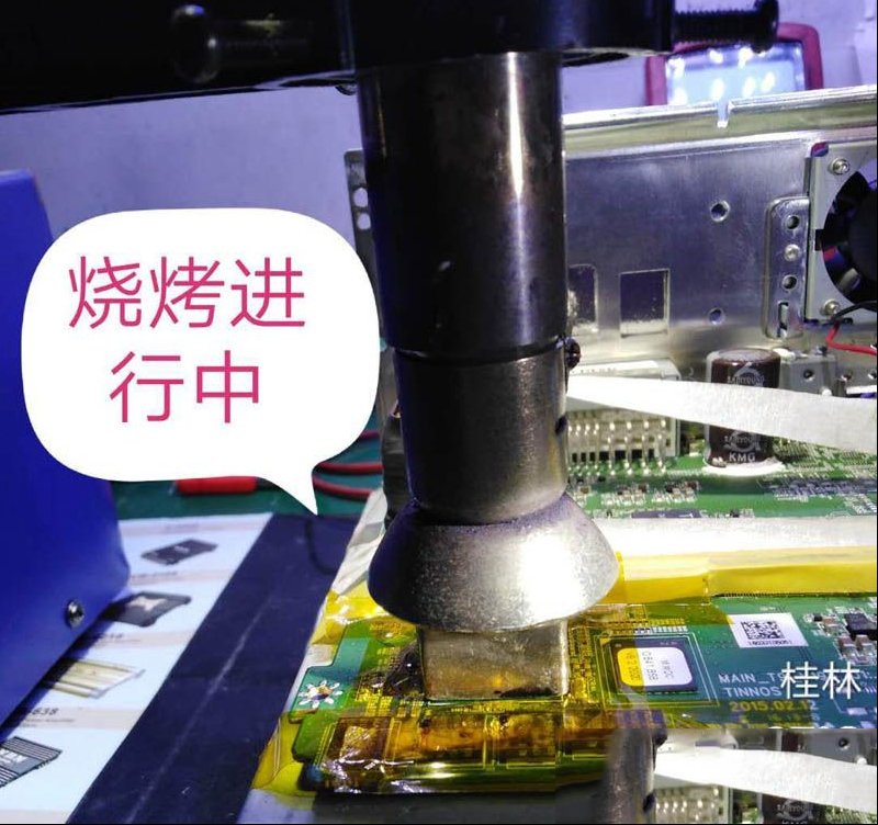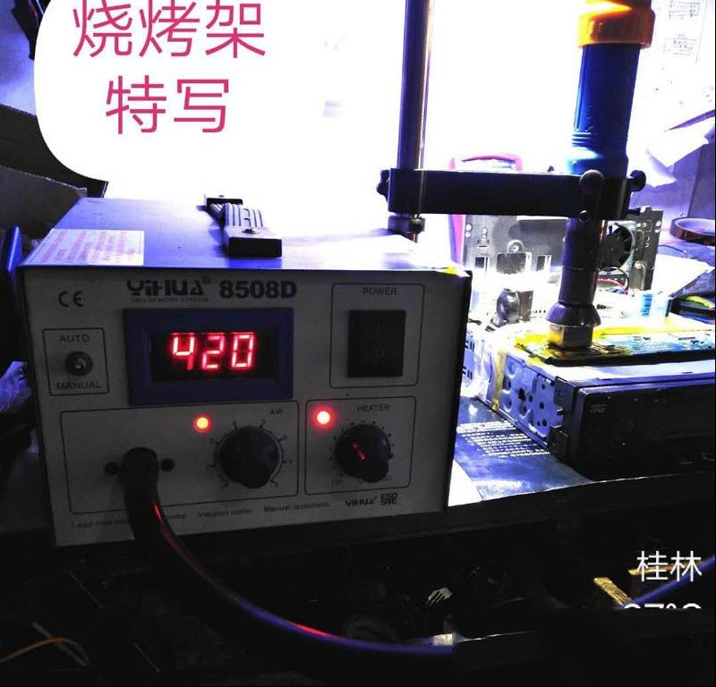 | 韩国现代车系只要是采用原厂摩比斯(MOBIS)工厂生产的导航,都会有使用几年后出现黑屏/开不了机但倒车后视有图像的问题。出现这个问题的根本原因是TCC8803这个芯片。这个芯片工作时发热量很大,而厂家没有匹配相应的散热系统。导致它很容易虚焊。解决的方法如下:第一种,只重焊绝对不保修,正常情况下可以使用三天至半年。第二种,换新芯片和加强散热条件。保修半年。 首先拆下主板清洗干净,在焊接部位用高温胶布把周围的元件保护起来,在焊接芯片四周涂上助焊剂固定好主板调好焊台位置就大火开烤。烤三分钟左右用镊子触碰lC松动后再烤十来秒取下旧IC。用吸锡带清理残锡并用洗板水洗干净,涂上助焊剂把新IC脚对好后再上架烧烤一偏就可以了,如下图所示。 |