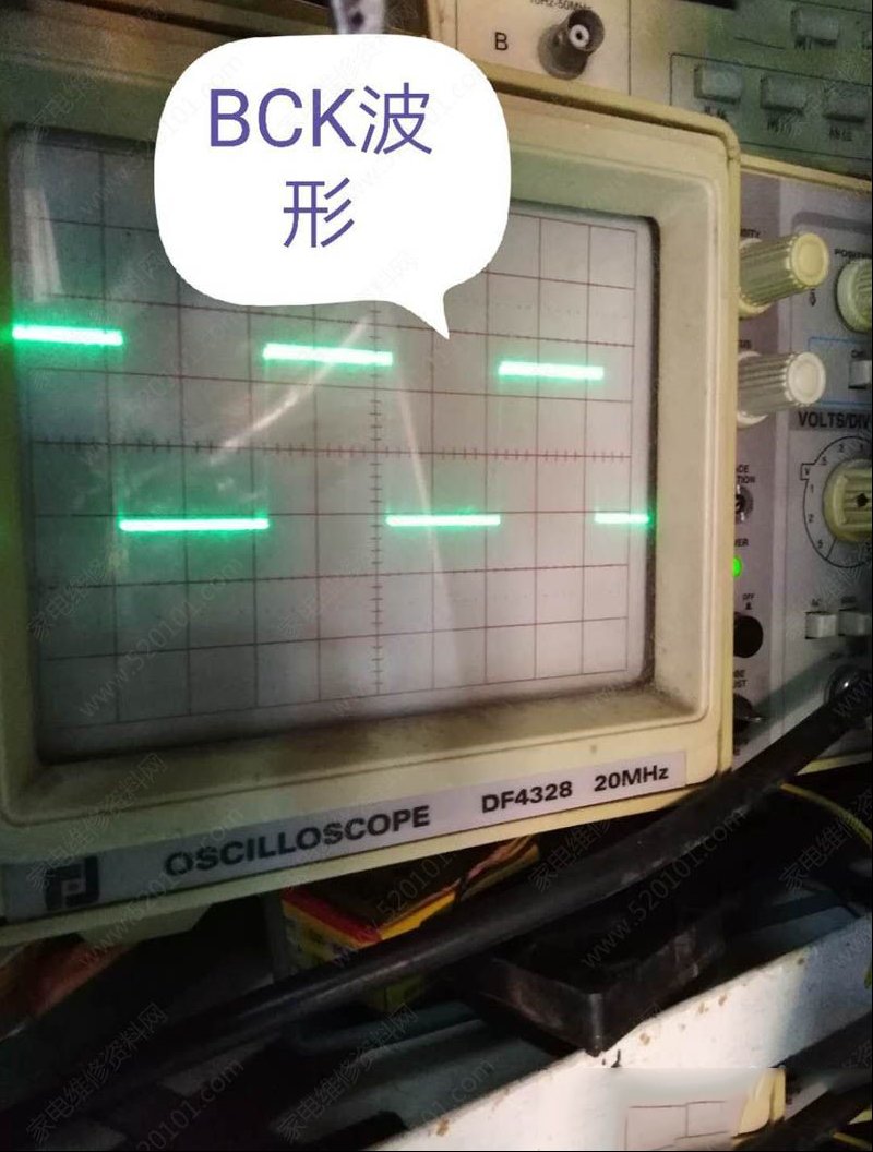 | 收到同行送来的故障机壹台歌王VK3000前置效果器,故障现像是音频输入无声音,话筒也无声音。显示屏亮,调整旋钮/按键有相应的显示变化。分析显示屏亮按键有反应说明CPU控制部分正常。问题出在DSP处理/DA(数模)转换/AD(模数)转换/输出运放/以及它们的供电电路。本着先简后难的原则,测各组电压都正常。输入1KHz信号用示波器测量发现音频信号到达了AD转换lC输入脚,而输出脚的DATA信号无变化。正常的话DATA波形会随输入信号变化而变化。进一步测AD转换lC的BCK/LRCK/SCk波形,发现SCK无波形。顺着线路往DSP芯片一路追查过去,发现元件号为U8的IC有SCK信号输入而无输出,换同型号IC后故障修复。 |