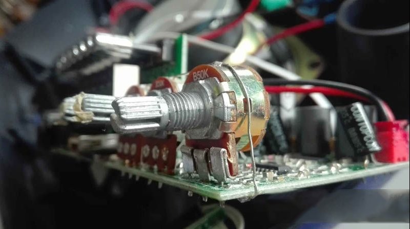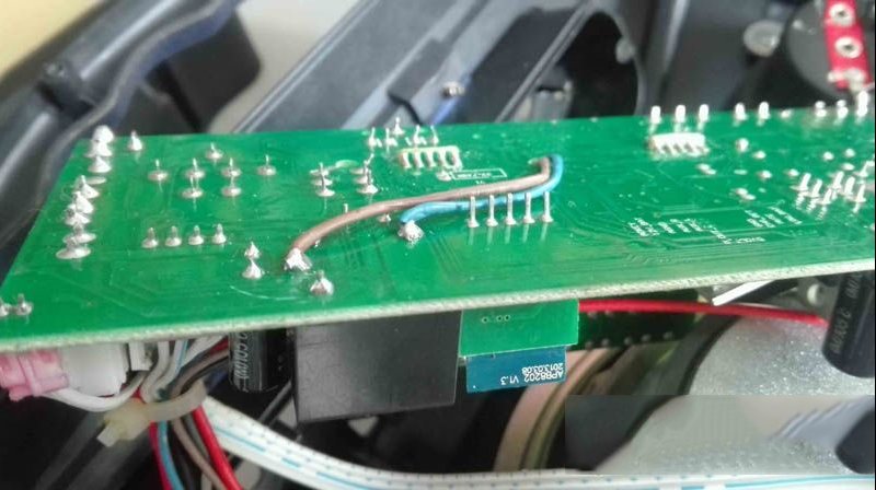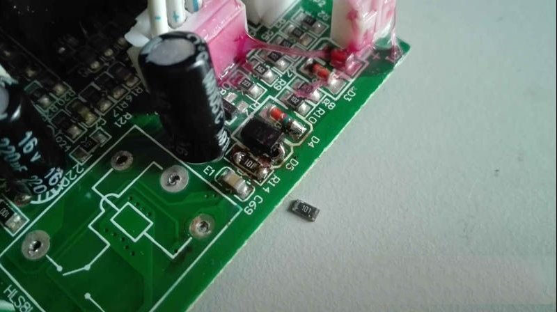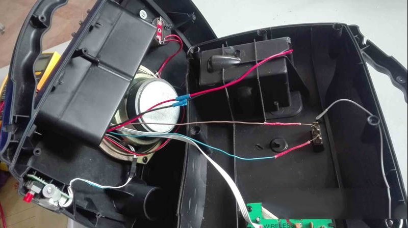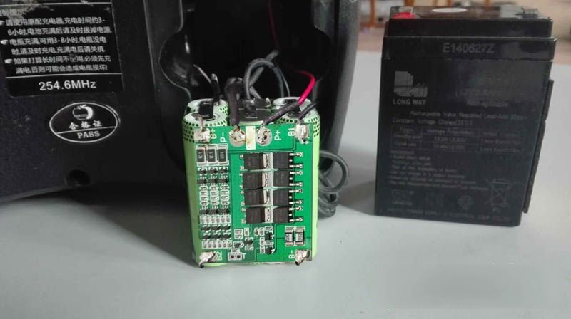 | 收到同行送来的故障机壹台老年人使用的一个天谱广场舞音响,型号为TP-H0562。原来电池充不进去电,便一直用充电器工作,后来又烧了,怎么都不通电。于是测试,发现充电器无输出,拆开检查,发现场效应管烧坏,原来的是K5A60D,我从坏笔记本电源上拆了一个10A60D换上,绰绰有余了。 另外一个贴片二极管和一个2欧限流电阻烧坏,于是全部更换。 检查其它相关原件没问题,于是串灯泡通电测试,输出15.35V,维修成功。 接上充电器,广场舞音响还是不能开机,看来电路有问题。原来电池充不进去电,想先检查一下铅酸电池,电压只有0.49V,看来电池已经报废。后来又充电试验确实充不进去电了,无法修复。 虽然电池没电了,但是接充电器也应该能开机啊。拆开主板检查,发现上面有继电器,开来开机应该是由继电器控制的。于是检查继电器附近电路,发现一贴片电阻烧坏,一贴片二极管脱焊,但是更换后还是不能开机。 由于这个主板集成度很高,又找不到相关图纸,维修起来难度较大。心想既然是用继电器控制开机,那把继电器短接一下试试能不能工作,能工作就说明主电路没问题。短接后音响正常工作了,各项功能正常,看来只是开机电路有问题。 如果直接用导线短接,虽然能工作但是却无法关机了。于是准备外接一个船型开关来控制,在音响后面商标贴纸上方用电钻钻孔。 把内部连线接好。 装上的船型开关,开起来也并不像是后来装上去的。这样开关机就能用这个开关控制了,特别适合老年人使用。 另外音量控制旋钮失灵,手头没有这种短脚的50K电位器,只有一个长脚的,于是把针脚完折后装上,一样用。 这样虽然接充电器能使用了,但是没有电池总感觉不方便。而换新的铅酸电池成本略高,还不耐用。自己手头恰好有个坏笔记本电源,拆开一看就是6节18650锂电池,两节电池并联为一组,三组串联,最高电压应该是4.2*3=12.6V,测测手头这个前两天才用万能充充满电的电池串在一起的电压,正好是12.6V,用这个改装一下效果岂不是更好。 不过原来的15V充电器经过内部主板电路为铅酸电池充电的电压有14V多一点,超过了三节串联锂电池的充电限制电压(一节锂电的充电限制电压为4.2V,三节就是12.6V),要想改用锂电池供电,那就要把充电电压先改为12.6V才行。这个就需要改动充电器电路了,不过这个不算多难,改取样电阻就好了,就是下图中贴片431左边中间的两个贴片电阻。 先找个100K色环短接一下试试左边一个电阻,电压降到13.18V,就是这个电阻了,并接右边那电阻电压会升高。再经过主板电压还会下降不到一伏,这样就差不多了。 这个小贴片电阻上面的字看不太清楚,于是拆下测量,原来是20K的。 用公式算一下,1/R=R1/1+R2/1,可以算出要想电压降到13V多,需要接一个17K左右的取样电阻。不过这样还不够精确,那就用103可调电阻串一个10K色环电阻再精确的测一下。旋动可调电阻,让音响电池充电脚的电压定格在12.6V。 测一下此时的可调加10K色环的电阻值为16.95K。 一时找不到这个阻值的贴片电阻,于是用三个色环串在一起,在PCB上打孔装到正面开阔位置。 此时的充电器电压是13.36V,通过取样电阻降低了接近2V。 锂电池充电还要加装保护板才行,淘宝买来三节串联锂电池保护板,照图示连接好引线,装入电池仓,比原来的铅酸电池小了一大圈,里面多加两层泡沫。 最后充电测试,完全正常,至此广场舞音响改装维修完毕。 |