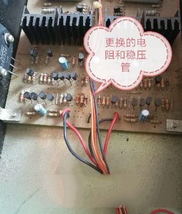 | 湖山AMP2 100-01功放机,通电开机,电源指示灯亮,听见机器继电器吸合,用手机输入音频信号两个声道都无声。拆开机器看到印制板面差分放大两个声道电路分别加了两个电阻,看到线路板正面左声道差分电路少了3.3k电阻,43k电阻焊错了位置,对照右声道看到左声道反馈电路烧了一个200欧电阻。 从网上下载了该机的电路图,用表测量该机恒流源电路的两个7.5V的稳压管已经击穿,对照电路图发现机器的左声道的43k的电阻焊接不正确,还缺一个3.3k的电阻。拆掉两个稳压管,用两个1瓦7.5V稳压管换上,换上恒流源电路3.3k和43k电阻,我从电路图上看到是330欧的电阻,没有看到200欧的电阻,找一个220欧的电阻又并联一个2.2k电阻换到左声道的反馈电路上,又测量恒压偏置管2n5551漏电,换上新的2n5551,测量其它电路没有问题,通电继电器吸合,用手机输入音源,两个声道都放出了动听的音乐。 . |