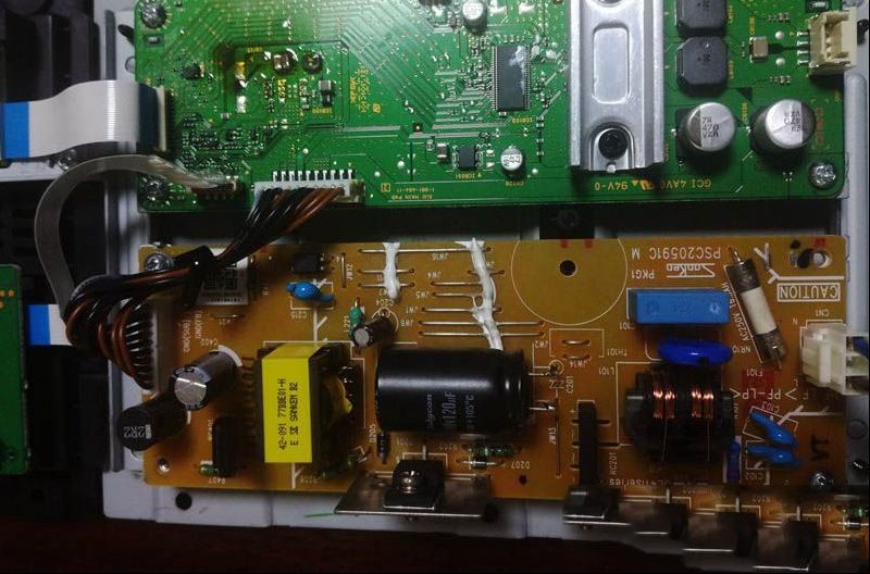 | 收到同行送来的故障机壹台索尼HT-CT290回音壁音响,故障表现为不开机,拆机24V电源有18V(应该正常工作后会升高),主板只有18V无低压供电。查54334负载部分短路,查两电容正常。用热风枪吹下54334后检测3、4脚短路,网购一片54334后故障修复,试机一切正常。 |