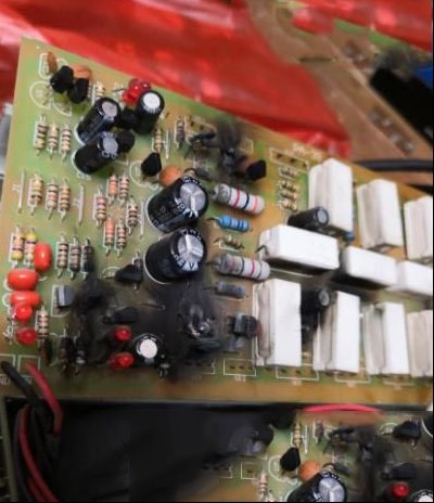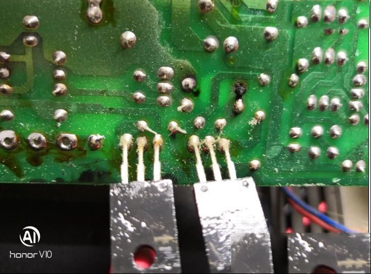 | 一个做监控的朋友拿来的收到其他维修同行的一台定压功放,是学校广播用急用。好吧拆,其实也就是把坏件换了就完事,问题就是坏的电阻翻了大半天。4对5200全部完蛋,郁闷了炸那么多奇怪了,准备维修,C2240/970管没有,用5551/5401替换,脚位排序不一样要注意。A1837推动管击穿,没有另边C4793没坏,用的669/649上下一起替换,不能只换一边,因为原管子参数差异很大,不同时替换会导致中点漂移严重。 仔细看板子不会这个引起的吧,测量又没见导通,估计受震动才会短路。 拆保险管接60W灯时看来下保险居然是10A,这功放350W没必要那么大也就4A/5A就可以了,估计是烧保险后又怼了10A进去,才会烧那么多后级管。昨晚负载接电炉丝烤机一晚,工作正常。 |