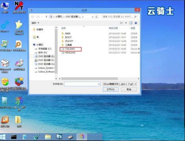| GHOST镜像文件即为GHO文件,可通过OneKey、光盘等进行还原系统,但是,我们现在更多的是将GHOST放进U盘内重装系统。U盘重装比其他软件更方便携带和运用,大大提升GHOST重装系统的安装率。因此,今天小编就为大家详细介绍U盘重装Win7系统的教程。 注:在运用U盘前,一定要备份好U盘内的数据。 准备工具: 1.U盘启动盘 U盘启动盘制作教程点我 2.下载ISO/GHO格式Win7系统镜像文件(自行度娘) 具体操作方式如下: 一、首先将下载好的Win7镜像文件复制到U盘中,如图: 二、将制作好的U盘启动盘插入电脑USB接口,按下开机键启动电脑,并在电脑开机提示时按下电脑主板快捷启动键。 注:不一样品牌的主板启动快捷键都不相同,用户可运用云骑士装机大师查询自己电脑主板的快捷键 三、进入BIOS界面,在弹出的窗口中,我们用键盘上的“↑↓ ”键来选择前面制作好的U盘作为启动盘,然后按回车键进入启动盘界面 注:在选择U盘时,BIOS界面只会显示U盘品牌的英文名称,用户也可根据有关USB选项去选择。 四、设置好BIOS启动设备后,接着进入云骑士主菜单界面,用键盘上的“↑↓”键来选择【02 Win 8 PE(新型机)】然后回车,如图: 根据自己电脑配置选择32位或者64位进入,在这里小编以32位进行演示 五、进入云骑士PE界面后,双击打开桌面上的【云骑士一键还原】,如图: 六、打开后,点击【浏览】,选择一开始就放在U盘中的GHO镜像文件,如图: 七、特殊情况外,一般我们都是以C盘为系统安装盘,在这里我们把Win7系统安装到C盘,选择后点击【确定】,如图: 八、这时系统会自动进行安装,在安装过程不要进行其他操作,以免造成安装失败 九、安装完成后,重新启动系统进入部署界面,只需耐心等待即可 十、部署完成后自动进入系统,到此,Ghost重装Win7系统就完成了。 以上就是GHOST重装Win7系统的详细教程,还没有学会用户可根据以上步骤去试着操作哦! |