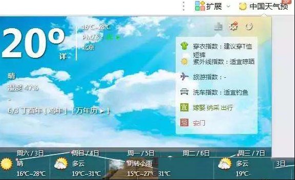 | 动图镇楼: 相信大部分人每天都会打开浏览器,进行一些上网搜索,观看新闻等等事情,也许还常常会用浏览器从网络上下载一些资源,电影之类的东西。运用浏览器大大方便了我们的生活。 浏览器从无到有,从低到高,现在的浏览器添加了许许多多有用的功能,但是大部分人却只是运用了浏览器一小部分的功能,浏览器很多有用的功能却被我们忽视。 所以今天就给大家介绍一下浏览器上一个非常有用的功能——插件!可不要小看了插件,一个好的插件可是相当于一个好用的软件。插件演示 1.在电脑上打开浏览器(以360浏览器为例),点击右上角的“扩展”按钮,打开插件管理界面。 2.在插件管理界面点击右下角的“更多扩展”,打开360插件使用市场。 3.在使用市场中选择需要的插件,例如选择一个中国天气预报的插件进行安装。 4.查看一下它的简介,点击右上角“添加到浏览器”,之后浏览器会下载插件。 5.插件下载完成后,会跳出窗口提示安装,添加插件后,右上角就出现了我们添加的插件。 6.点击一下看看。 最后:每种浏览器添加插件的方式都是区别不大的。网上有很多好的插件,如看电影的插件,下载用的插件,拦截广告的插件等等,有兴趣的,可以看看。 |