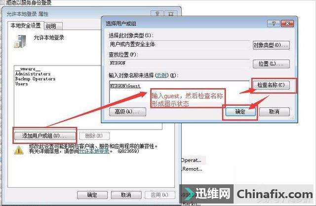 | 有时候我们会把电脑借给别人运用,为了防止别人乱修改内容,于是我们就得开启guest账户,可是很多用户不知道guest账户开启的方式,其实很简单,下面就由小编来教大家Win7系统guest账户开启的方式吧! 方式/步骤: 1、在电脑端激活guest用户有多种方式,只说最常用的两种。第一种在“计算机”或“我的电脑”单击右键,选择“管理”。 2、双击“本地用户和组”,然后双击其下的“用户”。 3、展开如下界面。 4、可以看到,guest用户是禁用的,这时候双击“guest”,弹出如下界面。 5、按需要开启了guest账户后第一步就算完成了。或者采取命令行的方式,不过最好先确定你具有系统管理员的权限。也就是在cmd的左上角提示你是管理员权限,或者输入whoami看看你是不是amdinistrator,如图: 6、输入net user guest /active:yes激活guest账户,改密码的话就是net user guest 新密码。 7、如果这时候你试验一下切换账户登录,不好意思,还是不可以,为啥呢?因为电脑默认的安全策略是禁止了guest终端登陆的,那咋办?没事,在命令提示符或者运行框中输入“gpedit”打开如下窗体。 8、依次打开“计算机配置-Win设置-安全设置-本地策略-用户权限分配”把窗体打开到如下图所示状态。 9、分别找到这几项“拒绝本地登录”和“允许本地登录”,把拒绝的guest项删除,如图: 10、找到允许本地登录,把guest添加进去,要注意,是可以手动输入guest,但是一定要点一下“检查名称”,形成完整的名称才行。 11、现在就已经可以本地登录guest了,不想guest账户被启用,可以把所有操作反着来一遍即可,当然,guest取消激活的命令行是net user guest /active:no。 Win7系统guest账户开启的方式就讲到这里了,是不是很简单,我们只需要先去激活guest账户,之后再去配置用户权限,最后在允许本地登录的地方把guest账户添加进去就可以了。 |
