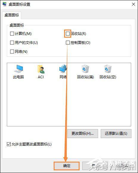 | Win10系统下怎么隐藏回收站?在Win10系统中,简洁风格已经发挥到了极致,哪怕用户还能够优化的,大概是桌面上唯一的回收站图标(原版安装好之后桌面只有一个回收站),想知道如何操作,请参考下文步骤。 注:以下操作需要激活Win10系统,才能继续操作。 Win10系统下怎么隐藏回收站? 1、我们可以先来看看,右键点击回收站,是没有删除按钮的。 2、要想删除,我们右键点击桌面,然后点击个性化。 3、进入个性化界面,然后左侧导航选择“主题”。 4、然后在点击“桌面图标设置”按钮。 5、进入桌面图标设置,这里把回收站前面的勾去掉。然后点击确定按钮。 6、然后在看看桌面。回收站图片就被隐藏啦。如果需要显示,同样的步骤,把勾勾上就可以了。 一尘不染的桌面 以上步骤便是Win10系统下隐藏回收站的方式,同样的方式还可以帮助用户隐藏“此电脑”、“网络”等桌面上的系统图标。 |