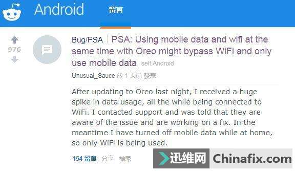 | 前不久,谷歌正式发布了Android 8.0 奥利奥。数日前,Pixel、Pixel XL以及一部分Nexus机型已经“吃上”了奥利奥。 不过,最近有用户发现了Android 8.0存在一个让人无法忽视的bug。 具体来说就是,在打开WIFI、连接也没有问题的状态下,用的还是用户的移动流量。 据悉,当初开发者在Android 8.0正式版的编译版本中默认启用了“始终开启移动数据”这个功能,才发生了这个bug。 现在,谷歌已经跟进此事,并强调会尽快搞定这个Bug,而官方还建议在更新没有出来前,连接无线WiFi的时候,还是手动关闭移动数据吧。 |