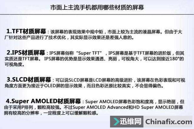 | 手机屏幕发展史 自手机进入彩屏时代,其屏幕就一直在演进,从最初的TN屏,到IPS再到AMOLED,从原来的硬屏到柔性曲面屏,再到双曲面屏、折叠屏幕以及现在的全面屏…… 手机屏幕原理及分类 手机屏幕所有显示的图片、颜色、文字都是由R(红)G(绿)B(蓝)这三原色组成。随着手机彩屏的慢慢普遍,手机屏幕的材质也越来越显得重要。对于手机屏幕来说,屏幕材质在很大程度决定了这款手机的显示效果。 如果按屏幕的材质分类,现在智能机主流的屏幕可分为两大类:一种是LCD(Liquid Crystal Display 的简称),即液晶显示器,它的耗电量低,图片成像效果好。另一种是OLED(Organic Light-Emitting Diode的简称)即有机发光二极管,他们分别代表着被动式和主动式的显示屏幕。 现在市面上比较常见的TFT、SLCD、IPS以及LTPS都属于LCD的范畴。AMOLED系列屏幕则隶属于OLED的范畴。现在的厂家很喜欢运用面板类型来标注TFT-LCD面板,常见的面板主要有TN、VA、IPS、CPA(AVS)等,而a-Si、IGZO、LTPS和CGS则是材料技术,事实上这些名词常常混用让人分不清,小编也是超级懵逼地整理了这一期。现在手机上常见的OLED屏幕以三星的Super AMOLED屏幕为主。 手机各类屏幕详解 TFT屏幕 TN面板名为扭曲向列型面板(Twisted Nematic),成本低廉注定了它是使用最广泛的一种,TN有时候也会被称之为TFT,TN面板的缺点是可视角度小、色彩还原能力有限。现今最为流行的LCD屏幕就是TFT屏幕,也叫薄膜晶体管屏幕(Thin Film Transistor)。TFT屏幕的每个像素就是一个晶体管,因此可以控制每个像素独立的开闭。这样的规划提升了屏幕的响应时间和更高的对比度,然而也因此耗电量很大,可视角度差。 IPS 技术屏幕 IPS俗称“Super TFT”,从名字中我们知晓,IPS屏幕是基于TFT的一种技术,其实质还是TFT屏幕,只不过是采用IPS技术的TFT屏,相对于普通的TFT屏,它拥有可视角度大、色彩还原准确、触摸无水纹、环保节电等优势。 一些中高端手机上最常运用是IPS屏幕,它也是LCD屏幕的一种。IPS屏幕从各个角度都能显示一致和准确的色彩,因此,它比一般的TFT屏幕要有更广的视角,对于一群人围在一起看视频时尤其的重要。它的全名是In-Plane Switching(平面转换硬屏技术),是日立公司于2001推出的液晶面板技术。“IPS屏幕”拥有相当好的可视角度表现,上下左右的四个轴向方向,都可以做到接近180度的视角,相比传统的TFT视角更好、色彩显示也更加出色。 LTPS技术屏幕 LTPS(Low Temperature Poly-silicon)低温多晶硅技术是为了搞定单晶硅的缺点开发而来,把外围电路集成到面板基板的可操作更强,载流子移动速度更快,面板的规划更简单,PPI最高可实现500+,一般在300PPI以上的都是采用这种技术。 LTPS-TFT LCD液晶显示器具有高辨别率、高色彩饱和度、成本低廉的优势,被寄予厚望成为新一波的显示器。由其高电路整合特点与低成本的优势,在中小尺寸显示面板的使用上有着绝对的优势。 第3代LTPS在周边大规模集成电路(LSI)整合比前两代更完备,其目的是:没有周边零件可使模块更轻薄,也可以减少零件数量和组装工时;简化信号处理可降低电力消耗;搭载内存可让消耗电力降至最低。 *SLCD屏幕 SLCD是英文SpliceLiquidCrystalDisplay的缩写,即拼接专用液晶屏。SLCD是LCD的一个高档衍生品种。SLCD是一个完整的拼接显示单元,既能单独作为显示器运用,又可以拼接成超大屏幕运用。根据不一样需要,实现单屏分割显示、单屏单独显示、任意组合显示、全屏拼接、竖屏显示,图像边框可选补偿或遮盖,全高清信号实时处理。 SLCD能够满足不一样运用场合、不一样信号输入的需要,超过50000小时的运用寿命,没有任何灼伤、损伤,维护成本低;任意几个单元可组合显示一幅完整的画面,任意一个画面可以叠加在其他画面之上,通过软件,可将任意一个信号,以一个屏为单位,在拼接幕墙上移动;另外在屏幕的可视角度方面也非常不错。 *ASV技术屏幕 夏普公司的ASV(AdvancedSuper-V)技术,改进了TFT显示屏的响应速度和可视角。夏普将ASV描述为一个排列晶状物质的新方式,而此晶状物质显示起来就象夹在两片薄薄玻璃中的三明治。 这其中有几项改进,最显著的改进之一就是视觉角度。现在的显示最多让用户可以从垂直140度水平110度的角度看清显示内容,而ASV将这一角度提升到170度。另外,现在决大多数显示器的默认状态为打开显示器时所有像素为白色,直到被转换为其它颜色,这就意味着那些坏掉的像素依旧是黑色而且很难被注意到。ASV的第三个改进就是响应时间减少,从45毫秒减少到25毫秒以下。 *NOVA技术屏幕 NOVA是现在一种新型的显示技术,NOVA和其它的屏幕相比最大的优势在于其在相同的亮度情况下耗电要比其它屏幕更低,并且其在黑色色系的表现方面非常出色。NOVA最大的特点在于拥有700Nit的光亮度下还极端节能,并且还能够提供清晰的阅读体验,屏幕对比度也有大幅提升,做到了真正黑白分明的显示效果。光亮度280Nit以下,比传统的LCD省电高达50%,在纯白画面下比AMOLED省电两倍。LG曾在今年的CES展会上展示了采用基于NOVA技术显示屏的手机和NOVA技术的3D手机,而最近刚刚发布上市的这款LGP350和P970采用的就是NOVA技术屏幕。 ****************** 我是换代的分割线 ******************** OLED屏幕 OLED 就是有机发光二极管(Organic Light-Emitting Diode)的意思,OLED屏幕由有机聚合物组成,通电是便会发光。它比起传统LCD屏幕提供了更多的优势,比