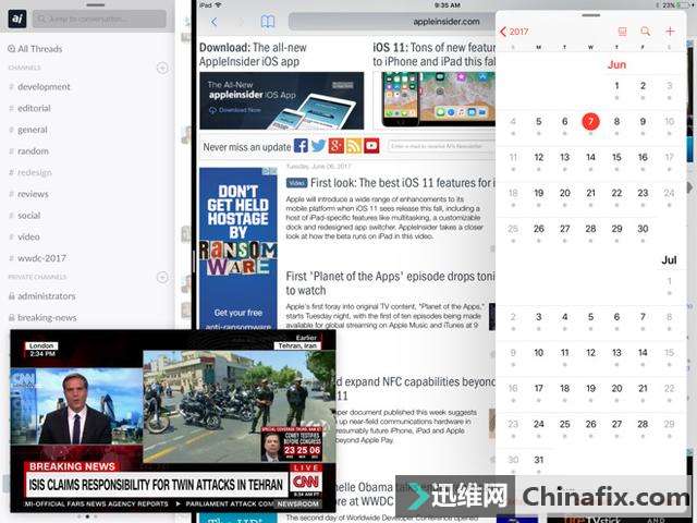 | 4个使用同时在屏幕上操作,感觉好忙的样子,你喜欢吗? 在 苹果iOS 11 中,iPad 的多任务处理能力已经提升至 11 个(或者更确切地说是 4 个),这让用户可以在屏幕上同时运行更多的使用。 苹果iOS 11 新扩展的 dock 栏允许用户将使用拖放到屏幕上。把使用拖到显示屏边缘,再把另一款使用打开,将其插入到分屏中,这样同时在屏幕上会显示两个使用。 任何在 苹果iOS 10 中运用过分屏功能的人都会立刻对这一点感到熟悉。但在 苹果iOS 11 中,用户现在可以通过滑动模式在屏幕上添加第三个使用。为了做到这一点,在你把两个使用放到分屏之前,先把一个使用放在 SlideOver 上。打开一个使用程序,然后从 dock 中拖出第二个,但不要一直拖到屏幕的边缘。 只需把后面打开的使用放到现有的使用上,就可以在滑动模式下查看。 一旦你滑动一款使用,你就可以向右一直滑动屏幕去删除它,或者是从屏幕的右侧拉出来查看——这就像苹果iOS 10中所做的一样。但在 苹果iOS 11 中,储存在 SlideOver 的使用现在可以查看,甚至可以在分屏视图中查看。 你还可以在视频中加入第四款使用,这要归功于照片拍摄模式,苹果iOS 10 的功能在 苹果iOS 11 中也更加强大。有了图片、分屏视图和 SlideOver,用户现在可以在 iPad 上同时显示 4 个任务。 让 苹果iOS 更强大的是,新的使用切换屏幕控制中心——可以通过双击 home 键来访问,也可以在屏幕上滑动四根手指——还能记住在分屏视图中配对的使用。这被称为“使用空间”。 对于专业用户来说,所有这些功能的结合,让 iPad Pro 变得更加强大。用户可以轻松地在 Safari 和 Slack 的分屏视图之间切换,同时浏览日历、邮件、Twitter 和 Notes。所有的音乐使用都可以轻松地在SlideOver的有线电视频道中轻松获得。 在外媒测验版正式版的 苹果iOS 11 中,一款 12.9 英寸 iPad Pro 同时运用四款使用程序是非常流畅的,所有四项任务都可以在屏幕上显示出来。 9.7 英寸的 iPad Air 2 也能同时完成四项任务,但有一点需要注意:当 SlideOver 操作被调用时,它是屏幕上唯一可以与之交互的使用,其他“后台”任务变成灰色。 现在还不清楚这是 iPad Air 2 处理器的限制,还是尺寸较小的屏幕造成。 |
