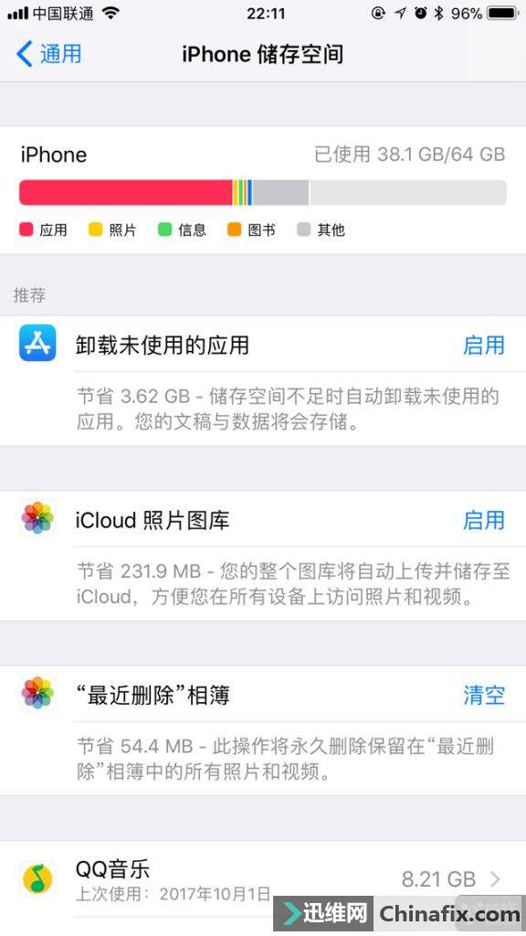 | 在苹果最新发布的 苹果iOS 11 操作系统中,需要快速释放 iPhone 或者 iPad 储存空间的用户将会获得一些推荐选项,这些选项可以帮助用户立即在设备上获得更多的可用储存空间。在释放空间这方面,苹果iOS 11 比以往任何时候都要更容易一些。 我们以 iPhone 为例,在设置 - 通用 - iPhone 储存空间中,我们可以看到当前 iPhone 所占用的储存空间,并通过不一样的颜色来了解到各类内容占据的空间比例,比如使用、照片、信息、图书、邮件和其他等等。 这个界面中还提供了一些可以释放更多储存空间的推荐选项,比如卸载未运用的使用、将照片图库上传 iCloud、清空“最近删除”相簿等等。一种常见的搞定方案是,在 iPhone 储存空间不够的情况下,我们可以选择让 iPhone 自动卸载未运用的使用程序,同时保留文稿和数据。 我们还可以在这个界面的下方查看所有使用所占用的空间大小,并根据自己的运用需要选择卸载使用,文稿和数据将保留,若 App Store 仍提供该使用,重新安装之后将会还原数据,或者我们可以直接删除该使用,删除使用将会把所有相关数据删除,且不可撤销。 另外,信息使用本身还拥有一些推荐选项,比如删除较大的附件和对话等等,用户可以查看信息使用中占用空间较大的照片、视频和附件,并考虑是否将它们删除。 在 苹果iOS 11 系统中,这些推荐选项均提供“启用”按钮,不需要用户在设置中寻找。而需要提到的是,我们现在并不清楚苹果给一款使用贴上“未运用”标签的标准是什么,这跟很少打开的使用应该有所分别。 |