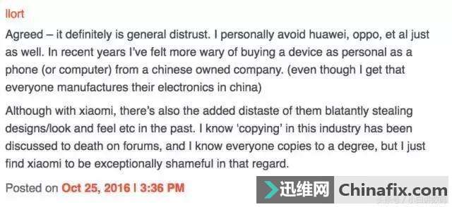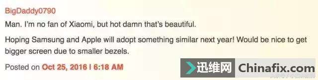 | 小米MIX2的发布会已经一月了,小米MIX2不仅给了我们惊喜还引起了老外们的注意。 翻译:老天爷,你太牛逼了,小米。 翻译:Word的天,这绝逼会成为我的旗舰手机,note7算什么GUi ? 翻译:哥们,我并不是小米的粉丝,但是这特么的太漂亮了。希望三星和苹果在明年也可以做出一些相同的东西。拥有收到其他维修同行的一台真正宅边框的超大屏幕手机简直就是太赞了。 翻译:终于,小米拥有了自己的牛逼的规划。 翻译:太可恶了你居然提前发布了Iphone10在苹果之前?这是非法的泄密!哈哈哈 翻译:同意,这绝对是普遍都无法被信任的。我个人也会避免选择华为或者OPPO这些中国手机品牌。在最近的几年里,在购买一部中国品牌手机或者电脑的时候我也变的愈发的谨慎(虽然我知道所有的厂商都在中国生产他们的电子产品)。 然而关于小米,他们明目张胆的在过去窃取其他人的外观或者规划这是很让人厌恶的。 我知道『抄袭』已经被讨论过太多次。 我也知道每一个厂商难以避免。但是我发现小米公司特别的丢脸的在这个方面。 |