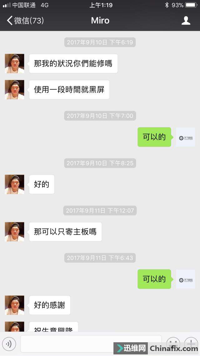 | 近日收到台湾网友的收到其他维修同行的一台iPhone手机6sp,描述的问题请看图。 由于路途遥远他打来的是单主板,拿到手我先测验手机。 开机后检查所有的功能,发现他的手机运用wifi无法搜索到网络。 Wifi天线已经确定装好,我的外配随便找的,所以又再次确认,确实搜索不到wifi。 那么问题找到,先把wifi修好再说。 拆下wifi,清理完焊盘,重新安装! 然后进系统测验(由于这台机修完了后外配被拿走了,所以又换了一套外配)。 上网试试。 毫无问题,就是wifi芯片虚焊导致手机待机睡死,经过手机单独测验,问题已经没了。所以说,只要测验详细,手工ok,大部分手机还是比较好修的,怕的是别人乱动! |