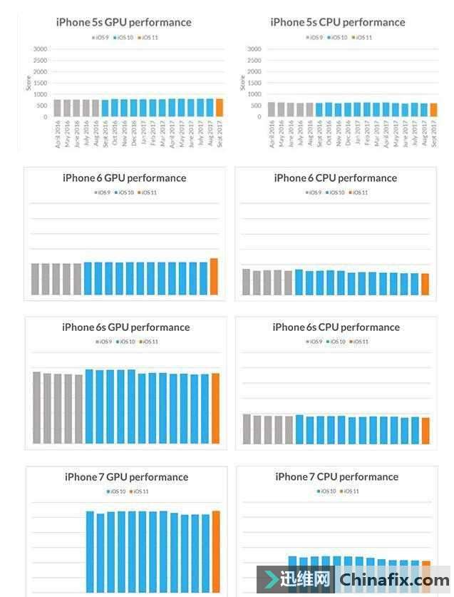 | iPhone 4s 苹果iOS 11 在9 月底发布,不少人升级之后均感觉电量用多了,而且变慢了,过去每次苹果iOS 更新,不论大与小,都有声音指自己的手机越缴越慢,但为何变,是手机的问题,或是其他原因导致?最近Futuremark 公开了苹果iOS 装置的历史跑分,带来了「真相」。 确实在不少影片之中,升级苹果iOS 11 之后使用程序和开机速度变慢了,但是在处理器和图像处理方面,升级苹果iOS 似乎不会影响效能。Futuremark 最近公开了数据,发现iPhone 5s/6/6s/7 在2016 年4 月至今的处理器和图像处理器跑分并没有受苹果iOS 更新影响,其中iPhone 6 的图像处理跑分更是年年上升,情况有点反常。 升级苹果iOS 后旧iPhone 变慢不是因为手机硬件问题 当然Futuremark 的跑分似乎只是反映苹果iOS 装置的A7/A8/A9/A10 Fusion 处理器和图像处理单元的表现,并未反映实际运用的情况,但是过去不少使用程序反应测验影片当中,当我们往往集中看打开使用程序的时间,事实上在影片末端显示的Geekbench 处理器跑分,按机型计却长年没有太大分别。 苹果过去曾经为旧机推出苹果iOS 更新,改善旧机的稳定性。换言之,升级变慢的原因未必是硬件问题,很有可能是升级后的苹果iOS 本身未能适应旧iPhone 的规格以及更新前的苹果iOS 导致,是编程的问题。 |