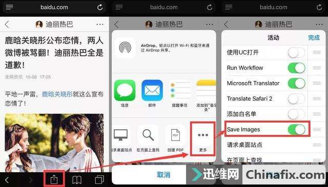 | 对于各位iPhone用户来说,经常上网的话,总会看到好看的图片想保存到手机中,这时我们会采取的操作是长按某张图片,再点击保存,但如果图片一多,这种操作就显得过于麻烦,那有没有更方便批量下载保存图片的方式呢? 当然是有的,我们首先要到AppStore中搜索下载《save images》,别看都是英文,没关系,接下来会教大家怎么运用。 好了,下载安装好之后,我们来开个网页试试看,点击底部的【箭头】,再点击【更多】,再把【save images】按钮打开。 接下来点击【save images】,刚才浏览页面内所有的图片就会出现,点击【select】自由选择想要保存的图片,选好之后,在点击【save】保存,那些你打了勾的图片就会一次性的保存到你的相册中了。 这样批量保存网页图片是不是简单多了? |
