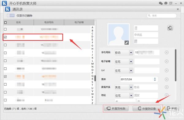 | iPhone手机通讯录遗失如何维修?我们每天会用手机通讯录来拨打电话,如果手机通讯录遗失了,势必会对我们的生活造成很大的影响。尤其是对于一些商务人士来说,手机中可能保存着大量的客户联系方式,如果没了联系方式那就代表工作可能无法顺利进行。为了搞定大家的这个问题,今天就给大家带来一个找回iPhone手机通讯录联系人的方式。 iPhone手机通讯录遗失如何维修?iPhone联系人找回技巧分享 图1 方式一:iCloud恢复 iCloud会自动同步iPhone手机通讯录到云端,如果说我们iPhone手机通讯录遗失了,如果在iCloud中还有备份,那么也是可以通过iCloud备份来进行恢复的。但是如果我们的iCloud中没有备份,那么可能就需要通过其他方式来进行手机通讯录恢复的操作了。 iPhone手机通讯录遗失如何维修?iPhone联系人找回技巧分享 图2 方式二:通过专业恢复软件来恢复 如果说iCloud中无法恢复,那么我们可以借助恢复软件来进行操作。首先我们需要选择一款专业且安全的软件,选来选去还是选择了开心手机恢复大师(官网:http://www.kxbox.com/?src=265g)。类似的软件还有很多,百度一下,找几款口碑好的,还是很容易的,接下来,小编就围绕这款软件给大家带来详细的操作流程。 iPhone手机通讯录遗失如何维修?iPhone联系人找回技巧分享 图3 1:首先我们需要在手机中下载安装好开心手机恢复大师(下载地址:http://www.kxbox.com/download?src=265g),准备完毕之后,我们就可以用数据线将手机连接至电脑了。 2:如果您的设备是第一次连接电脑,应该还需要在手机上选择信任电脑,选择信任完毕之后,我们就可以看到软件连接上设备。然后点击【开始】即可。 iPhone手机通讯录遗失如何维修?iPhone联系人找回技巧分享 图4 3:选择【通讯录】 iPhone手机通讯录遗失如何维修?iPhone联系人找回技巧分享 图5 4:等待扫描完毕就可以看到恢复出来的手机通讯录了,其中以橘黄色字体展示的就是之前删除的数据,而黑色字体是依旧保留的手机通讯录。筛选出自己所需要的手机通讯录之后,点击右下角的【恢复到设备】即可。 iPhone手机通讯录遗失如何维修?iPhone联系人找回技巧分享 图6 以上就是iPhone手机通讯录遗失如何维修的搞定方式,希望大家可以通过上述的操作方式恢复自己手机中重要的通讯录联系人,如果大家遇到短信,微信聊天记录,照片等其他数据的遗失,也是可以采取相同的方式。 |