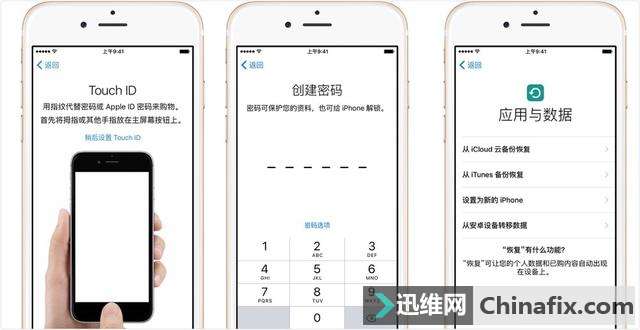 | 这篇文章,是为之前从未运用过,现在第一次运用 iPhone 的人而写。 新的 iPhone 拿到手,首先从外观上认识一下吧。Apple 一直以极简规划、注重用户体验著称。经过多次更新换代,iPhone 的机身已经变得又轻又薄,屏幕尺寸也越来越大。 iPhone 7 前面板元件示意图 昨天凌晨 Apple 发布会上更新的 iPhone X 还取消了 Home 键,改用全面屏规划,在屏幕上方留出了传感器区域,并将后置摄像头改为了竖行排列。 熟悉 iPhone 的键位和配置后,就可以开机探索了。 一、设置 Touch ID(Face ID)和创建密码 当你开机并选择完语言、国家和 Wi-Fi 网络之后,手机会问你,是否要设置 Touch ID (Face ID)和密码。设置了 Touch ID(Face ID),你就能用指纹(刷脸)来代替多次的密码输入,增强了手机设备的安全性,也方便解锁。 现在只有 iPhone X 支持 Face ID。 以后你只需用手指轻轻触碰 Home 键(把脸看着顶部的摄像头)即可。不过,出汗、灰尘、润肤霜(化浓妆)都可能会影响 Touch ID (Face ID)对指纹(面部)的识别,所以录入前,最好能清洁并擦干双手(面部)。 提示,想让指纹解锁更为灵活,不妨多录入几只手指(最多可以支持 5 只)。 接着,你需要设置一个 6 位密码,才能运用 Touch ID 和 Apple Pay 。如果你希望运用 4 位密码、自定密码或不运用密码,请点「密码选项」进行设置。 二、 从 Android 手机到 iPhone,数据迁移只需三步 设置好上一步之后, iPhone 将会显示「使用与数据」。如果你需要从你的 Android 手机把数据迁移到 iPhone 中来,请选择「从安卓设备转移数据」。如果要设置为新 iPhone 运用,可以直接跳过这一步。 在搬家开始之前,你需要: 确保 Android 手机连上了 Wi-Fi;将 iPhone 和 Android 手机插入电源;确保 iPhone 上有足够的储存空间来储存你要转移的内容;如果要传输 Chrome 书签,请将 Android 手机上的 Chrome 更新至最新版本。 然后,你就能开始转移数据了: 1. 选择「从安卓移动数据」后,等待 iPhone 上出现 10 位或 6 位数字的代码。 2. 在 Android 手机上安装使用「Move to 苹果iOS」。打开使用后,点击「继续」并同意相关条款,你会看到下图出现。再次点击「继续」,并输入刚刚在 iPhone 上显示的数字代码。 3. 随后,iPhone 会通过一个私密的 Wi-Fi 网络连接到你的 Android 手机,大概 1 到 2 分钟之后,Move to 苹果iOS 将会显示出你能够转移到 iPhone 上的数据类型,包括通讯录、信息历史记录、相机照片和视频、Web 书签、邮件帐户和日历等等。 只需要选择你要传输的内容,并轻点「下一步」, iPhone 就会为你迁移数据。整个过程可能会花费一段时间,这也是为什么 AppSo(微信公众号 AppSo)建议你回家之后,自己上手 iPhone 的原因之一。 小彩蛋:Move to 苹果iOS 这款使用并非由 Apple 开发,而是使用 Copy My Data 的进化版。在 Google Play 上架之后,Apple 这种公然挖墙脚的行为也激怒了一堆 Android 粉,因此它在 Google Play 上恶评如潮,仅有 2.5 分。 三、创建 Apple ID 如果你是第一次运用 苹果iOS 设备,此前也没有用过任何 Apple 服务的话,你需要创建一个 Apple ID。Apple ID 是用于访问所有 Apple 服务的帐户。有了它之后,你才可以在不一样的苹果设备上登陆,并享受苹果提供的软件服务。 更通俗点说, 有了 Apple ID 能做下面这些事: 在 App Store 下载 App;收发 iMessage、拨打 FaceTime;同步 iCloud 项目,包括邮件、照片、通讯录、提醒事项、Safari (iPhone 自带的浏览器)历史记录等;同步钥匙串,它可以为你保存在 Safari 上登录的各种账户密码;定位、查找、锁定你登录过该 Apple ID 的 Apple 设备;以及更多。 由于 Apple ID 的权限实在太强大,出于安全性考虑,Apple 也把密码创建的标准设置得很高。在你创建 Apple ID 的时候,可能会发现很多平时常用的密码都用不了了。 如果你想创建一个足够安全的 Apple ID ,你需要: 一个用作 Apple ID 用户名的有效电子邮件地址;包含 8 个以上字符,大写和小写字母及至少一个数字的密码;提供你的出生日期;选择其他人没法轻易猜出的三个安全提示问题和答案,只要你能记住,可以填写完全无关的答案;添加救援电子邮件地址。 如果还不放心,建议开启双重验证。这样即使别人知道了你的密码,想要登录你的 Apple ID 也十分困难。 四、App Store App Store 是 iPhone 唯一下载正版使用的商店。在这里,你可以下载到所有支持当前 苹果iOS 平台的使用。数百万的 App 和丰富的软件生态,也是 苹果iOS 最吸引人的地方。 成功进入 App Store 后,点击「Today」页面右上角的头像,输入你刚注册的 Apple ID 和密码,并添加相应的付款方式,就可以下载你喜欢的使用了。 现在,App Store 已经支持了银联、支付宝、微信支付的方式进行购买,非常方便。如果一不小心买错了使用,还可以申请退款。 另外, App Store 每天都有许多限时免费或降价的活动。想知道怎样获得这些福利,记得关心微信公众号 AppSo,及时收下那些限免/降价 app。 App Store 里上架的使用都是根据全球各地区定制的,很多使用只在特定区域的商店上架。即使是同样一款游戏,中国区的游戏难度也可能跟其它区域的不一样。 不一样区域的 App Store,左边是中区,右边是美区。中区没上架的 Pokémon GO 可以在美区下载到。但对于好的使用,又怎么能因为地域限制而放弃呢?这里有我们特别整理的战略,教你轻松注册美区账号。 五、iCloud iCloud 是苹果提供的云端服务,提供 5GB 的免费空间,可以备份照片、音乐、通讯录、短信、文档等内容,然