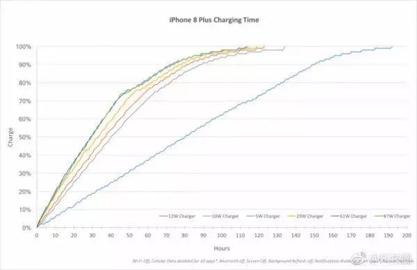 | 前不久刚发布的 iPhone 8 和 iPhone 8 Plus 都加入了快充技术功能,不过只标配了5W充电头,小伙伴们是不觉得不够给力呢? 近日,国外网友分别用5W、10W、12W、29W、60W和87W的充电头对 iPhone 8 Plus 进行了充电测验,一起来看看最终的测验结果图: 充电曲线图 不难看出,87W和61W的充电头充电效率最高,二者用 110 分钟就能将iPhone 8 Plus充满;29W和12W的充电头充电效率相差不大,而 iPad 上运用的10W充电头用120分钟时也能将iPhone 8 Plus充满电。 因为运用29W、60W和87W的充电头还需要搭配一根Type-C转Lightning的转接线;所以,为了方便起见,配备一个 12W 的充电头也许才是最好的选择。 另外,如果你也在运用 iPad,那么,用 iPad 的 10W 充电头进行充电也不错,入手了 iPhone 8 的小伙伴们可以试试哦~ |