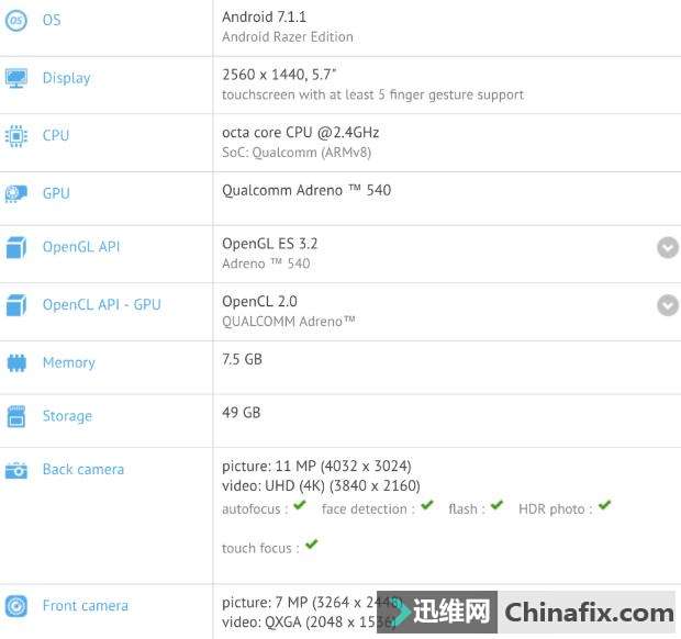 | 早前,有消息称,雷蛇将举行一场智能手机新品的发布会并有可能在年底前上市产品。 而根据GFXbench的数据,雷蛇新品手机将为旗舰机配置:5.7英寸16:9 QHD显示屏,高通骁龙835处理器和8GB 运行内存,64GB内部储存该,预装Android 7.1.1系统。 根据数据显示:雷蛇手机会运用1200万像素后置摄像头和800万像素前置摄像头,CMOS的具体型号还不知道,估计应该也是旗舰级别的。 虽然据称雷蛇这款手机是为骨灰级游戏玩家打造的,但是作为手机的新丁不知道定价会如何呢? |