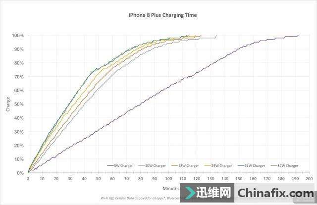 | 在快速充电的情况下,iPhone 8 系列手机可以在 30 分钟充至 50% 电量。 苹果在发布 iPhone 8 和 iPhone 8 Plus 的时候提到,这两款手机是支持快速充电的。根据苹果官方网站上的技术规格显示,在快速充电的情况下,iPhone 8 系列手机可以在 30 分钟最多充至 50% 电量。 不过,苹果并未在 iPhone 8 和 iPhone 8 Plus 的包装盒中提供快速充电器,这意味着用户想要在这两款手机上体验快速充电的话,需要单独购买一个售价 388 元人民币的 29W USBC 电源适配器和一根同样不便宜(188 元人民币)的 USB-C 至 Lightning 连接线。 问题是,iPhone 8 的快速充电值得我们花这个钱吗?快速充电真的快很多吗?根据软件工程师和创业投资人丹·洛温赫兹的测验,答案是否定的。 丹·洛温赫兹运用不一样的充电器给自己的 iPhone 8 Plus 进行充电,并记录电池电量达到 50% 的时间。从他绘制的图表可以看出,所谓的快速充电并没有想象中那么快。当然,充电器的功率越大,iPhone 8 Plus 充至 50% 电量的时间越短。 标准的 5W iPhone 充电器的充电速度是最慢的,12W iPad 充电器提供的充电速度要快得多。这个图表中最有趣的部分在于当丹·洛温赫兹改用大功率充电器的时候。运用 29W、61W 或 87W USB-C 电源适配器的确能实现苹果声称的“在 30 分钟充至 50% 电量”,但是运用 12W iPad 充电器只需要多花几分钟。 丹·洛温赫兹表示,这些大功率充电器更适用于 Mac 电脑和 iPad,它们的电池容量比较大,充电需要花上一段时间。但是对于 iPhone 来说,它们似乎毫无意义。 |