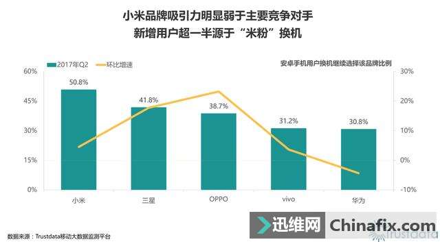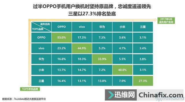 | 国内的智能手机市场堪称血海,国产手机巨头和国际品牌都集聚于此。做机如逆水行舟,不进则退,稍不努力,就会被竞争对手赶超。近日,国内的大数据监测平台trustdata发布的移动互联网报告显示,国内市场的手机保有量发生了变化。 国产手机品牌OPPO超越了苹果,成为国内手机用户数量最多的手机品牌,占到了市场总量的19.5%。苹果则以微弱的劣势屈居第二,国产手机崛起了!vivo第三、华为第四、小米第五,而经过的爆炸门事件,三星的市场占有率仅仅只剩5.3%。 跟我们想象的一样,近一年来,华为、OPPO、vivo保有量显著上升,而小米和三星情况则不太乐观。华为在经历了某事件的影响有轻微的下降之后又强势增长。 从上图中我们可以看到安卓手机品牌的集中度越来越高了,也就是说越来越少的人选择买一个小品牌的手机,像锤子、OnePlus这样的小品牌生存越来越艰难了。 还有一个有意思的数据,上面提到在这一年中,小米的占有率连续走低,但是换机中有一半都是来自于米粉的,这就意味着小米品牌转化其他品牌的能力最弱,这也就是为什么小米连续开设小米之家的原因吧!小米要加油了! 还有一个更有意思的数据,这张图表明了用户的忠诚度,和我预想的也差不多,三星毫无疑问成为了用户忠诚度最低的手机... 这份报告和你预想的有差别吗?快来说说谁才是你心中的国产手机NO.1? |