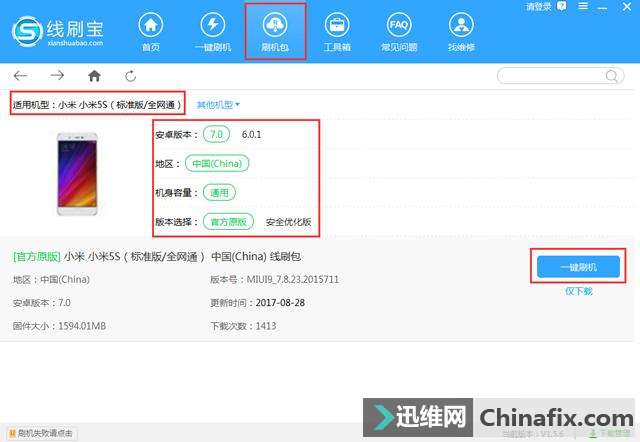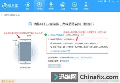 | 假定你是一个对手机一窍不通的新手(俗称小白),现在手机不开机了,怎么能自己搞定呢?小编这里总结了一个纯新手的教程,您不需要了解任何的东西,只要根据下面通用教材的步骤来操作,就可以让你的手机恢复正常! 第一步:准备工作。 手机一部,数据线一条(最好是原厂数据线),可联网的电脑收到其他维修同行的一台(如果是win 7 64位的系统最好)。 第二步:下载安装线刷宝。 在电脑上打开线刷宝官网,下载安装线刷宝客户端。安装时,一路直接点击“下一步”就行了。打开后如图: 第三步:搜索下载刷机包。(截图以小米5S为例) 点击界面上的“刷机包”,然后在搜索框里面搜索你的手机型号,然后搜索刷机包,搜到以后点击“一键刷机”就行了! 手机的型号和版本一定要对,不然铁定刷机失败! 找到的刷机包可能有很多个,如果不知道怎么选,直接选择默认的最新的、最上面的那个就可以了! 点击了“一键刷机”之后,等着下载完成就行了。一般可能需要半小时左右。 界面上没有“一键刷机”的按钮?那表示这个刷机包不支持一键刷机,如何维修?看这里:为什么有些刷机包没有“一键刷机”的选项? 第四步:手机进入刷机模式。 刷机包下载完成之后,线刷宝会自动解析这个刷机包,然后给出下一步的提示:操作手机进入刷机模式。 操作手机进入刷机模式是非常关键的,也是比较容易出错的。您一定要按照界面上的操作进行,直到手机进入和左图一样的界面! 第五步:线刷宝自动刷机。 线刷宝开始刷机后,就不需要任何操作了。此时要保证手机和电脑连接稳定,供电正常,不要移动手机和电脑,一般十分钟左右就可以刷机完成! 第六步:刷机完成,手机重新启动。 刷机完成后,线刷宝会提示刷机成功,然后手机就会自动重新启动(如果没有自动重新启动,你可以手动长按电源键启动)。注意,第一次启动的时间会很长,超过半个小时是很正常的! 小米怎么刷机专题:https://www.jdwx.cn/zt/301365-1.html |