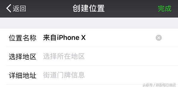 | iPhone X在2017年10月27号才会开启预售,如果你在朋友圈看到这样的消息,是不是觉得现在就可以用iPhone X了? 那像这样的“小尾巴”是如何做到呢?其实很简单,就是自定义创建一个新定位。 首先,在发布朋友圈消息时,点“所在位置”,点击搜索附近位置,然后就可以自定义输入你想要的“小尾巴”了。 点击搜索栏底下的创建新的位置,就可以进入位置编辑界面了。 在上面这个界面中,输入完地区后。详细地址可以用空格代替即可跳过,点击“完成”即可。 随后在预览消息里就能看到,自动带上刚才自定义的“小尾巴”了。 用这个方式,你可以创建各种各样个性的朋友圈“小尾巴”,下次再发布的时候,选择所在位置时就会保存下来随时供你选择了。 是不是很简单?发挥你的脑洞,在朋友圈装 X吧~ |