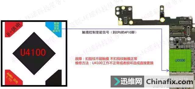 | iPhone6s 扣指纹键 无触摸 维修案例 今天我们要跟大家分享的是关于 iPhone 6S 扣指纹 无触摸的维修案例. iPhone6s 扣指纹键 无触摸 维修案例 同行发来一个iPhone6S 根据描述机子具体问题为:手机扣指纹按键以后触摸不行,如果重新拆下指纹按键手机触控功能又正常。 具体问题有了以后,我们首先检测指纹键,测量IC是否有短路破坏。 经过测量以后发现指纹无烧坏痕迹,也无短路,排除了外配问题以后,那就只能着手主板这方面了。 拆下主板观察主板是否有进水,或者同行维修过的痕迹,大致检查一遍以后再开始动手。 测量主板确定是主板本身的问题以后,开始测量相关的元件,根据以往的维修经验,发现U4100工作不正常。 查看图纸 iPhone6s 扣指纹键 无触摸 维修案例 根据问题查看图纸理清思路,其实维修师傅不单要有过硬的手工,还需一个靠谱的维修图纸作为参考。 iPhone6s 扣指纹键 无触摸 维修案例 原理图 iPhone6s 扣指纹键 无触摸 维修案例 iPhone6s 扣指纹键 无触摸 维修案例 iPhone6s 扣指纹键 无触摸 维修案例 iPhone6s 扣指纹键 无触摸 维修案例 iPhone6s 扣指纹键 无触摸 维修案例 直接更换破坏元件,重新装机测验,至此,iPhone6s 扣指纹键 无触摸 维修问题搞定。 |