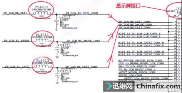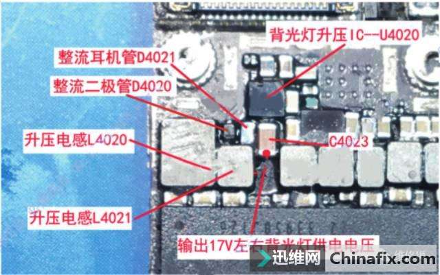 | iPhone 6S显示 触摸 背光的维修 背景灯供电由升压IC-U4020提供,输出供电信号分別经过电感FL4211 FL4212 FL4213送到显示屏接口J4200 ,跟iPhone6不通的是有两组升压电感跟整流二极管,其中破坏一组的话不影响灯光显示,但是在前拍照打幵闪光灯拍照的时候会破坏灯控IC前拍照的闪光灯就是通过增强背光灯的亮度来实现的,所以比iPhone6多了一组升压电感跟整流二极管.正常的机子在灯亮的情况下在电容C4023可以测的17V左右的电压.这个电压与亮度有关,亮度调到最亮的时候有20V左右.最暗的是16V左右 如果出现没有显示没有灯光的情况,装屏开机的情况下,测量电容C4023是否有17V左右的电压,如果没有继续测量显示屏供电IC输出的5.7V是否有,如果5.7V电压正常,则说明处理器己经发出指令让显示及背光相关电路工作,问题出在背景灯供电IC-U4020,更换U4020即可。 如果有17V左右则测量接口1,2,3脚的对地阻值,检査短接FL4211 FL42I2 FL4213。其中FL4212 (PP_LCM_BL_CATl)或者FL4213 (PL_LCM_BL_CAT2)破坏还会造成显示屏一边亮一边不亮的问题。如果出现一边亮一边不亮的情况检查短接FL4212 FL4213,如果分别短接FL4212 FL4213后依然有一边亮一边不亮的就是升压IC的问题,更换即可,因为更换升压IC-U4020很麻烦,可如下图的绿色线条短接搞定。 如果排除了通道上的电感以及更换了背光灯供电U4020后问题依旧的,拆下U4020后测量焊盘上的毎一个脚对地的阻值,看看是否存在开路成者短路的情况。如果有则检査与之相连的电感成者电容是否破坏,逐个排查。 iPhone6s的触摸IC是在显示屏上了,主板上是没有触摸IC,当然供电部分必须是在主板上! 显示屏跟触摸屏的供电分别由电源IC--U2000以及及U4000提供,U4000分别提供正负5.7V 以及5.1V,电源IC则提供1.8V的供电。 遇到没有显示没有灯光的情况,首先测量显示屏接口 1、2、3脚的阻值,排除电感FL4211 FL4212 FL4213的问题,排除电感后装屏开机,测量下图中+5.7V、-5.7V电压是否正常。如果没有 检査短接 FL4220(LCM_TO_CHESTNUT_PWR_EN_CONN), 检査短接 FL4221 (AP_TO_LCM_RESET_CONN_L) 更换显示屏供电IC--U4000 如果以上5.7V电压都有那么检查电感FL4200 FL4207 FL4208 是否腐蚀破坏令到三路供电无法送达接口可短接这三个电感!排除5.7V电压后检查1.8V电压是否正常(检查短接FL4205) 如果有显示但是触摸不管用的检查短接FL4209 FL4210 iphone6闪光灯不亮专题 https://www.jdwx.cn/zt/22663-1.html |