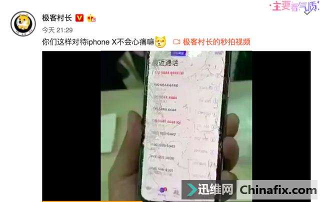 | 今天早上8点iPhone X正式全球开售,国内外第一批抢购成功的用户基本都在第一时间内拿到了iPhone X,心里那叫一个美,不过对于笔者来说有一个消息我已经等了太久,虽然不太友好,但真的非常令人期待,没错,那就是iPhone X全球首碎。 iPhone X全球首碎 图1 不过呢,这个机会并没有留给广大果粉,因为就在昨天晚上9:29分,国内微博数码测评团成员、知名数码博主、微博签约自媒体@极客村长成功将“iPhone X全球首碎”的桂冠戴到了自己头上。 iPhone X全球首碎 图2 iPhone X全球首碎 图3 通过@极客村长发布的视频,我们可以看出这是一部已经激活了的iPhone X,屏幕显示了众多的通话记录,不过现在这部iPhone X基本已经寿命正寝了,屏幕碎裂、厚玻璃盖碎裂,碎的那叫一个漂亮!按照之前苹果公布的国行版iPhone X维修价格计算,屏幕维修2288元,其他破坏(比如玻璃后盖)维修4588元,二者加起来的价格为6876元,买一部iPhone 8Plus绰绰有余,再加2000块还能来部新的iPhone X,哎呦,感觉不错呦! iPhone X全球首碎 图4 不过,现在零售版iPhone X是不能提前激活的,不然苹果可是要求索赔20万大洋的,所以这台iPhone X应该是@极客村长测评所用的媒体机,不过@极客村长还是在其微博问到:你们这样对待iPhone X不会心痛嘛? 很显然,对于iPhone X的全球首碎,网友们更多的是一种兴奋,而非悲伤,纷纷表示:不会,又不是我的;100我收了,再送你一个价值连城的不锈钢脸盆;60解君愁。 iPhone X全球首碎 图5 虽然iPhone X首碎的惨状看着确实让人很爽,不过笔者在这里还是要温馨提示:裸奔很危险,用套保平安! |