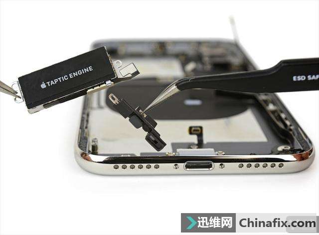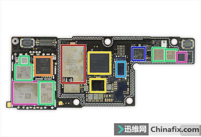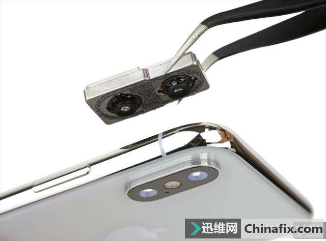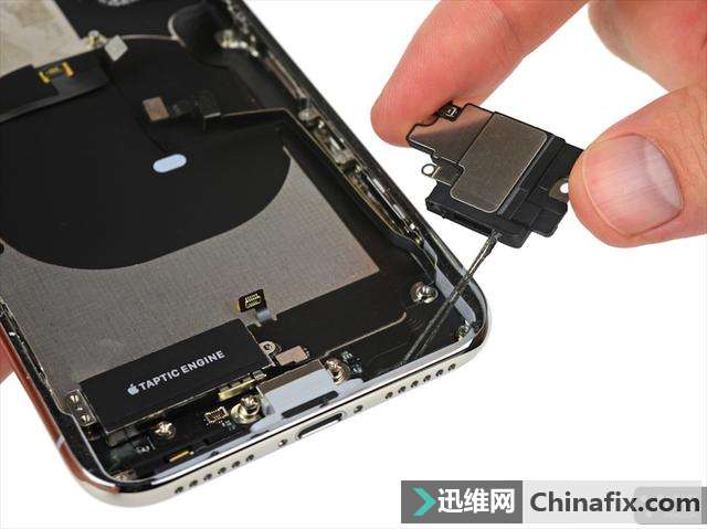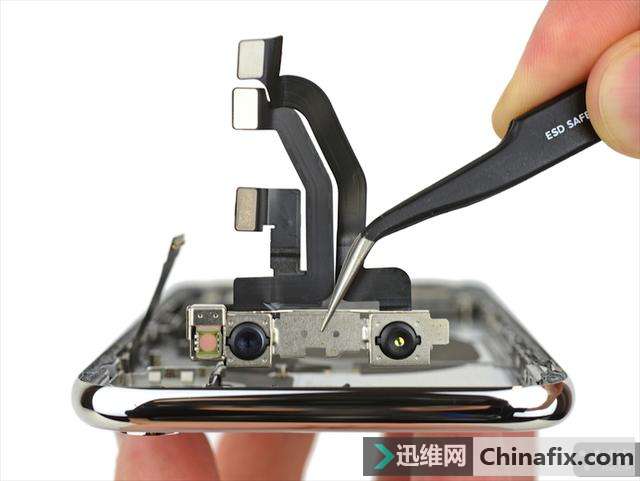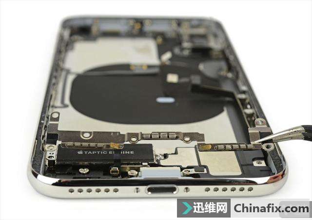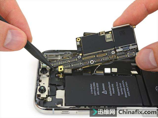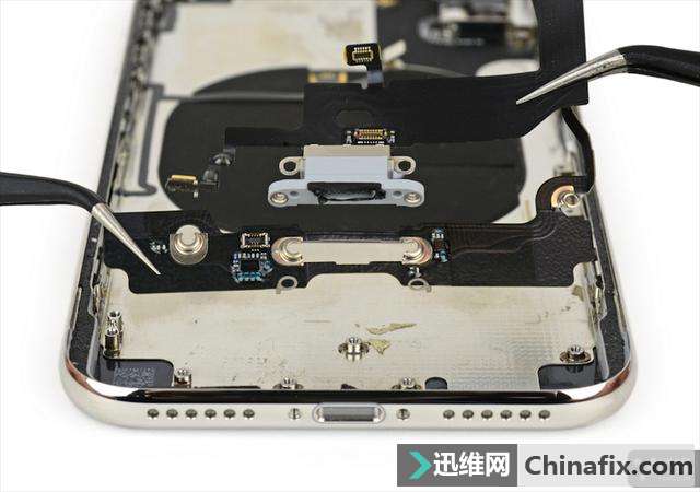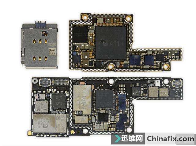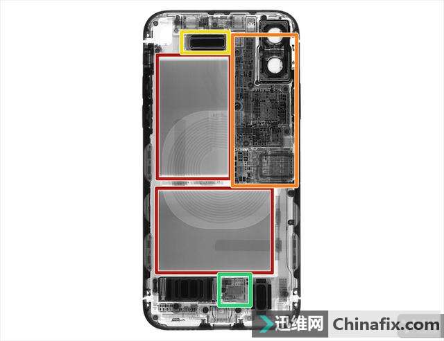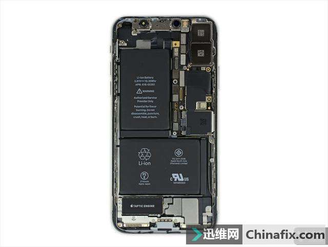 | iPhone X 是苹果发布的第一款 OLED iPhone 机型,这款手机已经于今日正式进入市场,现在已经有不少锋友晒出了 iPhone X 开箱照片。今天下午,给大家带来了 iPhone X 手机拆解报告,一起来看看吧! iPhone X拆解 我们首先来回顾一下 iPhone X 的主要配置参数: - A11 + M11 运动协处理器的苹果新一代仿生芯片 - 64GB 或 256 GB 板载储存 - 5.8 英寸 OLED 多点触控 Super Retina HD 显示屏,2436×1125像素(458 ppi) - f / 1.8 和 f / 2.8 光圈的双 1200 万像素广角及长焦摄像头,光学防抖,支持人像光效 - 700 万像素 TrueDepth 摄像头,f / 2.2光圈,1080p高清录制功能,支持 Face ID - 支持快速充电和 Qi 无线充电 - 802.11 a/b/g/n/ac Wi-Fi;NFC;蓝牙5.0;MIMO iPhone X拆解 iPhone 在过去的 10 年里走了很长的路,在经历 iPhone 6、iPhone 6s 和 iPhone 7 这三个造型基本一样的系列之后,苹果终于在 iPhone X 上运用了新的规划。 iFixit 认为,iPhone X 看上去有点像初代 iPhone,当然,除了凸起的摄像头、闪亮的不锈钢边框、玻璃背面板和 Lightning 接口。 跟早些时候上市的 iPhone 8 一样,iPhone X 的背面也去除了难看的监管、环保标志。 在iPhone X拆解之前,先用 X 光看看 iPhone X 的内部结构。iPhone X 跟之前的 iPhone 机型都不一样,它拥有两块电池,苹果第一次在 iPhone 上运用这样的构造。 iPhone X 有一个非常小的逻辑主板,从焊点的重叠来看,它有两层。为了给前置传感器腾出空间,扬声器被移动了不少。 此外,Taptic Engine 和下方扬声器之间有一个神秘的芯片,我们接下来看看它到底是什么。 底部的螺丝钉看起来更像是大头针,因为有一部分是没有螺纹的。 螺丝钉拧下来之后,轻松卸下屏幕面板。 打开屏幕之外,我们可以看到每一个逻辑板连接器,密度比之前的机型都要高。 拧下线缆连接固定的螺丝,小心分离屏幕面板和机身。 X 光扫描发现,一个神秘芯片被安装在显示屏幕上。 上图再一次证实了之前 X 光扫描时看到的布局:双电池和较小的逻辑板 双后置摄像头拥有一个相当结实的支架,看起来苹果为这些精密的部件提供了侧气囊式的支撑。 将双后置摄像头拆卸下来。摄像头另外用一些泡沫粘合剂固定在后壳上,以防止碰撞。 在运用人像模式和相似的功能时确实需要把摄像头固定着。 将最密集的逻辑主板解放出来,其空间规划紧凑,连接器和元件的密度是前所未有的。 iPhone X 主板的尺寸大约是 iPhone 8 Plus 主板的 70%,从而为电池腾出了更多的空间。 为了在尺寸有限的主板上投入更多的技术,苹果将主板折成了两半,两个部分是焊接在一起的,需要将它们分离开来。(这是我们首次在 iPhone 上看到双层板) iFixit 将两层主板分离之后发现,iPhone X 主板总面积是 iPhone 8 Plus 主板区域面积的 135%。 iPhone X 主板的第一部分 ● 红色:苹果 APL1W72 A11 仿生 SoC SK 海力士 H9HKNNNDBMAUUR 3GB LPDDR4 RAM ● 橙色:苹果 338S00341-B1 芯片 ● 黄色:TI 78AVZ81 ● 绿色:NXP 1612A1 ● 浅蓝:苹果 338S00248 音频编解码器 ● 蓝色:STB600B0 ● 粉色:苹果 338S00306 电源管理 IC iPhone X拆解 主板的第二部分 iPhone X拆解 ● 红色:苹果 USI 170821 339S00397 Wi-Fi/蓝牙模块 ● 橙色:高通 WTR5975 gigabit LTE 收发器 ● 黄色:高通 MDM9655 骁龙 X16 LTE 调制解调器和 PMD9655 PMIC ● 绿色:Skyworks 78140-22 功率放大器,SKY77366-17 功率放大器,S770 6662, 3760 5418 1736 ● 浅蓝:Broadcom BCM15951 触摸控制器 ● 蓝色:NXP 80V18 PN80V NFC 控制器模块 ● 粉色:Broadcom AFEM-8072,MMMB 功率放大器模块 两部分主板的另一面 ● 红色:Toshiba TSB3234X68354TWNA1 64GB 闪存 ● 橙色:苹果/凌云逻辑 338S00296 音频放大器 通过 X 光扫描来了解主板的 3D 结构。 iPhone X拆解 拆卸电池,iPhone X 的电池并不是双电池,而是采用双单元规划,能更有效利用空间。 iPhone X 电池额定 3.81V,容量 2716mAh,功率 10.35Wh。作为对比,iPhone 8 Plus 为 10.28Wh;三星 Galaxy Note 8 为 12.71Wh 接下来我们将注意力转向 iPhone X 的顶部,找到备受期待的 TrueDepth 相机系统。 第一步,嵌入显示屏上的泛光照明器用红外线照亮你的脸。 接下来,红色标记的前置摄像头证实人脸的存在。 然后,最右侧的红外点投影仪(橙色部分)在你的脸上投射网格点来创建 3D 地图。 最后,左侧的红外摄像头读取 3D 地图,并将数据发送给手机。 iPhone X 外壳中的剩余部分。 底部的扬声器,周围还有防水胶粘剂。 当然,还有 Taptic Engine。 iPhone X 的 Lightning 接口更加耐用,它有一个更宽的支架,通过螺丝固定在框架的侧壁上。 再看看 iPhone X 的显示屏,首先是听筒扬声器。 将组件拆卸下来之后,我们可以看到扬声器、麦克风、环境光传感器、泛光照明器和近距离传感器。 最后就剩下一块luo lu 的显示屏幕。 在光秃秃的金属外壳上,我们看到了另一个熟悉的部分:无线充电线圈。 当然,还有音量按键、铃声/静音开关和一个未知的传感器支架。 跟 iPhone 8 系列一样,iPhone X 的玻璃背面板也非常难剥离,苹果运用了大量的胶水来粘合。 iPhone X拆解 这就是 iPhone X 组件的全家福。 总结 - iPhone X 屏幕和电池容易维修替换; - 破裂的显示器可以被替换,不需要移除 Face ID 组件; - 运用螺丝钉比大量运用胶水要容易拆很多,但需要运用拆苹果产品专用的梅花型螺丝刀和 Y 字螺丝刀,外加一把普通的螺丝起子。 - 防水措施使得部分维修变得更复杂,但不太可能造成难以修复的水破坏; - 电缆较繁琐,将互不相干的组件连接在一起,替换起来很麻烦,且成本较高; - 前后的玻璃面板导致跌落