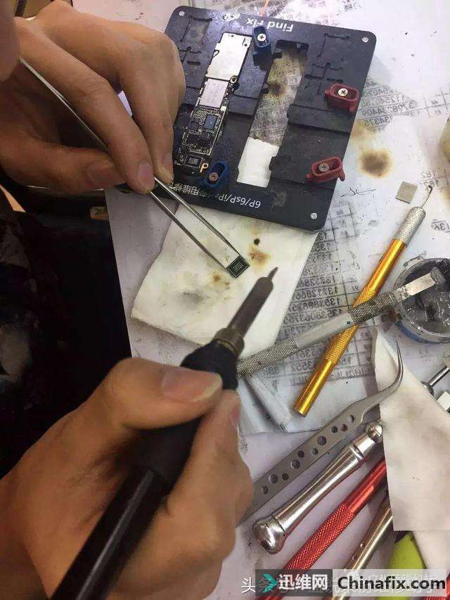| 今天跟大家分享的是iPhone6无wifi问题,拆解测量主板以后,发现1.8v复位电压没有,最初借了1.8v后能正常打开wifi,不过又出现了另一个问题:卡慢死机现象。 iPhone6wifi造成的卡慢死机检修思路 重新换了一个新的wifi模块问题依旧。再测wifi供电R5208_RF 1.8v只有1.0v,显著拉低了。接下来用二极管挡测R5208_RF的对地阻值,一头通处理器阻值200多正常,判断不是处理器问题; 一头通wifi变成400多,问题出在这里了。。 iPhone6wifi造成的卡慢死机检修思路 iPhone6wifi造成的卡慢死机检修思路 拆掉通路上的滤波电容,排除滤波电容破坏造成的阻值不正常。滤波电容取了也不行,阻值还是400多,电压依旧1.0V。 iPhone6wifi造成的卡慢死机检修思路 查看图纸,排查问题点.那么就是这个电阻R5208_RF的问题了,短接R5208_RF后阻值变回来了,供电也正常了。卡慢死机现象消失。 iPhone6wifi造成的卡慢死机检修思路 无线WiFi正常打开,问题搞定.如果遇到wifi造成的卡慢死机机器,不要盲目去换wifi模块,先测下wifi供电1.8v是否正常,如果不正常也会造成卡慢死机,用实际测量结果来判断,别走弯路了。 |
