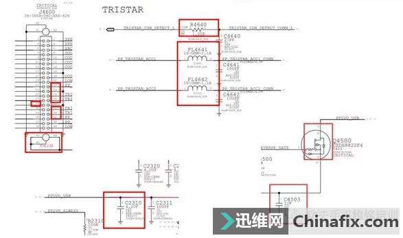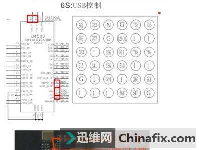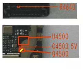 | 本文分享的是iPhone6S手机不充电的维修解析,首先是6S充电维修原理图文讲解: iPhone6S手机不充电第一部分: 电池脚检测和USB线路问题。 1、电池检测脚问题: 充电重新启动、电置不变、电池电置显示1%、电池电置显示不准 连接爱思助手电池无数据。 2、USB线路问题: 插充电器无反应、显示充电充不进、关机能充开机不能充、插充电器显示不支持此配件 1、检测脚问题处理: A、先考虑更换电池 B、充电电量不变,插充电器电量变少,电池检测脚电到 U2300 F2脚是否断线,中间有电阻R2400 ,可以短接, U2300 G1脚到处理器线路问题,6S加了Q2301保护,常见 Q2301出问题可短接1、3脚。上拉电阻R2302不能去掉,否则导致充电重新启动,电量显示不准. 如图: iPhone6S手机不充电的维修(图1) iPhone6S手机不充电的维修(图2) 2、USB线路问题处理: A、更换尾插测验 B、 尾插22、26、28及32、34、36脚任意一条断线会导致充电器一面能充一面不能充,通过测量阻值判断好坏。 C、尾插22、36脚钱路上电感FL4641、FL4642有问题可以短接。 D、尾插29脚电阻R4640有问题会导致插充电器无反应 E、43、44、46脚充电正扱,插上充电器有5V电。分两路。 —路去U2300 ,可在C2310测5V。另一路去U4500 , C4S03 测5V(Q4500坏可以短接2、3脚)。 iPhone6S手机不充电的维修(图3) iPhone6S手机不充电的维修(图4) iPhone6S手机不充电的维修(图5) iPhone6S手机不充电第二部分:U4500问题: 3、U4500不装(不工作)导致开机定屏,坏掉经常引起漏电200MA ),与5S、6通用。可以先测量其对地阻值, A、如何判断定屏为U4500问题:测验能否进入DFU和联机。如果不能进入DFU和联不了电脑。多数为USB管问题 B、U4500工作条件: 1、 F4脚,3V供电,C4500可测 2、F3脚,1.8V供电,C4502可测 3、E4脚启动 4、B6脚复位号,发送给电源 5、D3、D4脚总线 6、C6脚中断请求线 iPhone6S手机不充电的维修(图6) |