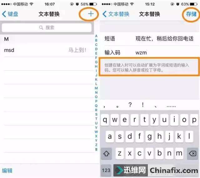 | 经常微信聊天、发朋友圈的果粉一定体验过用系统自带输入法打字的烦恼,今天小编就为各位果粉分享几个iPhone自带键盘使用技巧,可以让你的打字效率更快、更准。 首先,依次进入设置—通用—键盘—然后分别将“自动改正”、“启动大写字母锁定键”、“字符预览”以及“句号快捷键”开启: iPhone自带键盘使用技巧 图1 1、锁定大写 在输入英文的时候,默认第一个都是大写,在输入第二个字母时就会自动变成小写,但如果你要所有都要大写英文如何维修?其实只要双击键盘那个箭头图标两次,即可锁定大写状态了。 iPhone自带键盘使用技巧 图2 2、句号快捷键 句号可以说是我们日常输入文字运用最频繁的符号之一,开启该功能后,当我们以后要输入句号时,仅需点击两下“空格键”即可快速打出句号来! iPhone自带键盘使用技巧 图3 3、标点输入 在输入标点符号的时候,是不是觉得来回点那个键盘左下角的”123“图标,与“拼音”图标切换挺麻烦的? 其实在你要输入标点的时候,只需用拇指按住“123”图标,滑动到标点符号上,也会出现预览,松开之后即可以打出来了。是不是感觉很流畅快速。 iPhone自带键盘使用技巧 图4 4、文字修改 在我们将文字输入到文本框,准备要发送的时候,有的时候可能发现有部分地方要修改,通过单击某个文字后面位置来定位光标,可能有的时候还未必一次性就能点到。 这时候,如果你在键盘区域重按任意一个字母或空格,键盘会变成如下图这样的形态,这时候你在下方键盘区域滑动手指,就会发现光标定位会变得非常精准快速。 iPhone自带键盘使用技巧 图5 除此之外,果粉们还可以自定义快捷语言,将常用的句子录入系统:(如邮箱、口头禅等) iPhone自带键盘使用技巧 图6 设置方式:设置—通用—键盘—文本替换—然后点击右上方的“+”键,在输入短语和输入码即可。 iPhone自带键盘使用技巧 图7 |