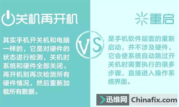 | 当手机出现卡慢时,我们第一反应是将手机进行重新启动,很少会有人选择关机之后再开机(当然iPhone手机除外)。除了时间原因之外,手机重启和关机再开机的区别有哪些呢? 手机重启和关机再开机的区别 图1 其实是有分别的,而且分别很大!最本质的分别在于是否涉及对手机硬件的操作。 关机再开机,需要对手机硬件的状态进行检测,然后将系统和硬件所有关闭,再开机时还需要重新检测硬件状态,再加载所有数据。而手机重新启动并不涉及及软件层面的重新启动,只是软件层面的重新启动,所以跳过了关机的很多步骤。 手机重启和关机再开机的区别 图2时间 简单来讲,开机再关机运行的步骤更多,从这点上就能解释为什么重新启动的操作花费的时间更短。 手机重启和关机再开机的区别 图3 耗电 同时,开机再关机需要对手机硬件进行全面检测,这个过程中处理器需要全速运行,所以对手机的耗电量也更大一些。 数据清理 另外,对手机数据的清理程度也不一样。和重新启动操作相比,关机能够清理手机更深层次的系统关键程序数据,并且可以连带深层垃圾一起清除。所以,关机再开机的操作会使得卡慢的手机更为流畅。 手机重启和关机再开机的区别 图4手机破坏 另外要注意的是,开机再关机的操作需要硬件进行配合,所以强制关机的操作对手机的硬件也会有一定的破坏,所以我们可以定期对手机进行关机,但不宜过于频繁。 手机重启和关机再开机的区别 图5 最后,给大家发福利,分享一种iPhone手机重新启动的方式: 长按电源键,就会出现“滑动来关机”的提示; 然后松开电源键,长按Home按键大概5-10秒,等带回到主界面,重新启动操作就结束了。 手机卡慢,你会选择重新启动还是关机再开机呢? |