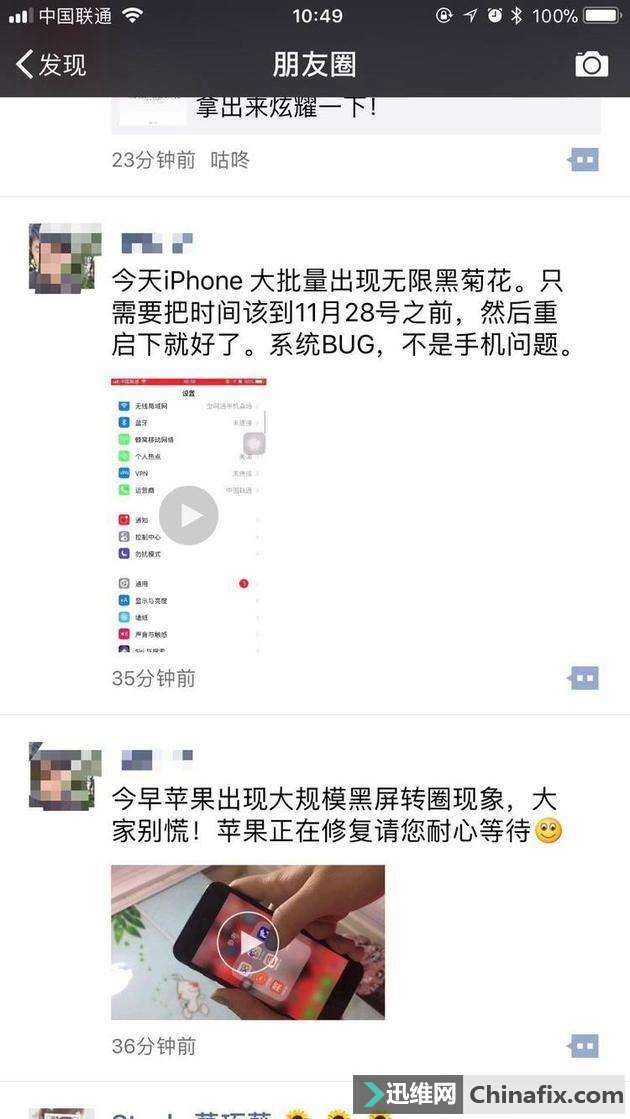| 突发iPhone手机无限重新启动的搞定方式(图1) 12 月 2 日凌晨起,有部分苹果iOS 设备在更新了 苹果iOS 11.1.2 之后,就开始出现无限黑屏菊花(手机无限重新启动)的情况,包括 iPhone 6/6 Plus、iPhone 6s/6s Plus 以及iPhone 7/7 Plus 在内的多款机型都被波及。你有遇到吗?(未确认传闻:据说 iPhone 8/iPhone X 并不会遇到这种情况,只有旧机型才会中招) 突发iPhone手机无限重新启动的搞定方式(图2) 好在,已经有网友放出了暂时的搞定办法,小编已经帮大家整理好了:据透露,两次手机自动重新启动之间会有约 25 秒的间歇。趁这个间隙,我们按下列步骤进行操作。 第一步:打开勿扰模式,关闭系统自动时区 首先开启手机的「勿扰模式」(即蓝牙/无线WiFi 开关附近那个月亮),然后找到「设置」-「通用」-「日期与时间」里面的「自动设置」,将对应按钮往左拨使其关闭。 突发iPhone手机无限重新启动的搞定方式(图3) 第二步:调整系统日期 关闭「自动设置」后,下方会出现当前日期时间,点击,即可进行手动设置。将日期时间调到 2017 年 11 月 28 日之前即可。 突发iPhone手机无限重新启动的搞定方式(图4) 第三步:重新启动手机 这里就不用多说了吧,关机,手机重新启动。好了,现在你的手机应该暂时正常了。 注意,不要把时间调得太接近 2017 年 11 月 28 日,否则时间一过说不定又开始出问题。 另外,据说上述情况也并非百分百成功。如果你按照上述操作也无法搞定问题,那就只好等待苹果方面修复了。另外,已经有用户收到了 苹果iOS 11.2 的更新推送,也可以更新一下看看是否能搞定问题。 |