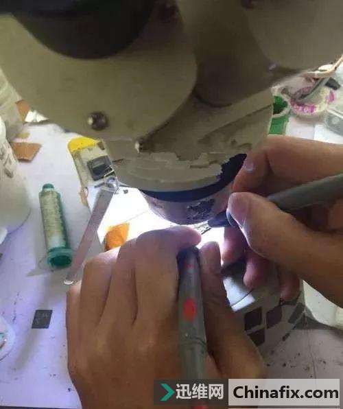 | 机器型号:iPhone6S 故障表现为:蓝屏重启,不充电不联机 维修步骤1:通常U1700不正常工作和破坏会引起不连联机不充电蓝屏重新启动。 元件标注彩图 那么这样的情况下,我们需要主查PP3VO_TRISTAR PP1V8 _SDRAM 这两个是由主电源的G18脚J1脚提供输出供电的,如果没有就查主电源。 相应的电路通路 维修步骤2:PP3V3_ACC是由U1703的PP_VCC_MAIN产生为3.3V在日常维修中,U1703破坏的几率相对比较高的。 测量阻值是否正常 维修步骤3:检查U1700复位信号也就是E4脚复位有无1.8V,如果没有可以直接飞线接电压1.8V,或者测验电容C1738判断好坏。 关于另一个问题,不充电的维修思路:检查U1700的F6脚和Q1701的2脚之间有没有断线,如果断线直接可飞线不影响。 没有断线的话就检查2脚有无5V输出,如果没有的话再查Q1701的三脚有无5V电压输入,如果Q1701的三脚有5V而2脚没有5V,那就可以确认是Q1701破坏,Q1701的三脚没有5V电压的话,就要考虑到尾插座子和排线等。 维修步骤1:通常U1700不正常工作和破坏引起不联机不充电蓝屏重新启动。 主要查PP3V0_TRISTAR PP1V8_SDRAM两个是由主电源G18脚J1脚提供输出的供电,如果没有就查主电源。 维修步骤2:PP3V3_ACC是由U1703的PP_VCC_MAIN产生为3.3V,在日常维修U1703破坏的比较多。 维修步骤3:检查U1700的复位信号也就是E4脚复位1.8V,如果没有可以直接飞线借1.8V电压,或者测验电容C1738判断好坏。 不充电维修步骤1:检查U1700的F6脚和Q1701的2脚直接有没有断线,如果断线直接飞线不影响。没有断线的话检查2脚电压有没有5V输出,如没有检查Q1701的3脚有5V电压输入。 如果Q1701的3脚有5V而5脚没有5V就可以确认是Q1701破坏。Q1701的3脚没有电压就要考虑到尾插座子和排线等。 |